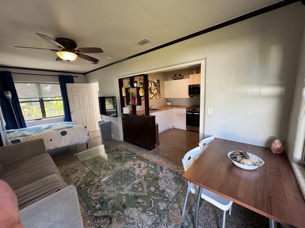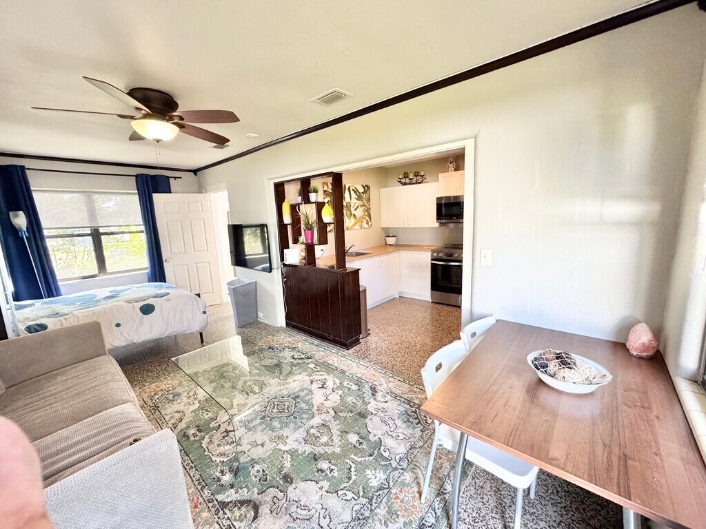 Furnished studio with full bathroom and kitchen . A detached unit with private entrance in a single family residence. Renovated bathroom and brand new full kitchen. Located downtown Orlando in Sodo district. Utilities and Internet included. Washer and dryer included. Parking is free, outdoor, in front of studio.
