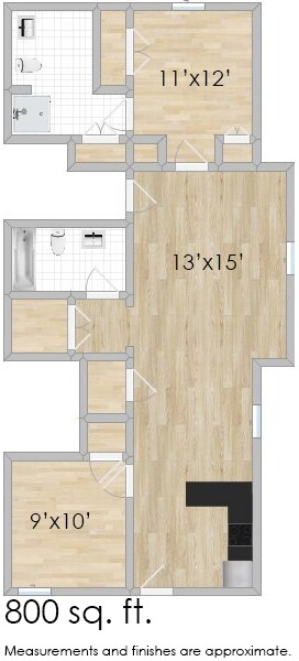 2 Dormitorios, 1 Baño, 1000 pies²Galería del Modelo