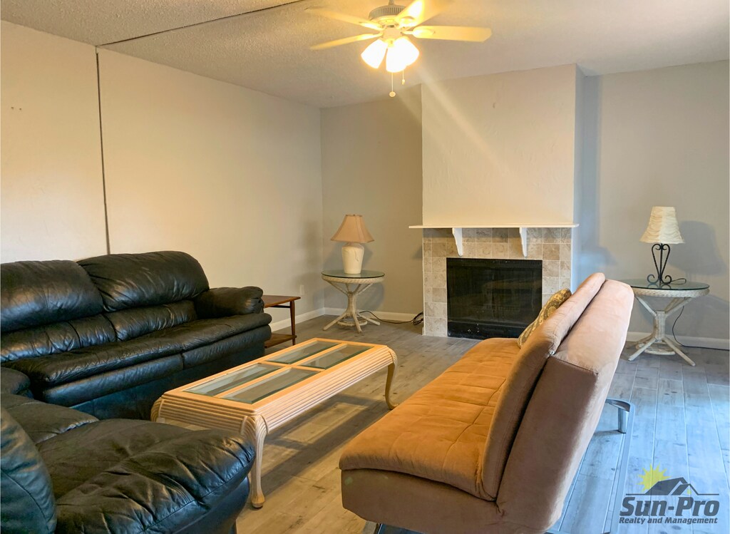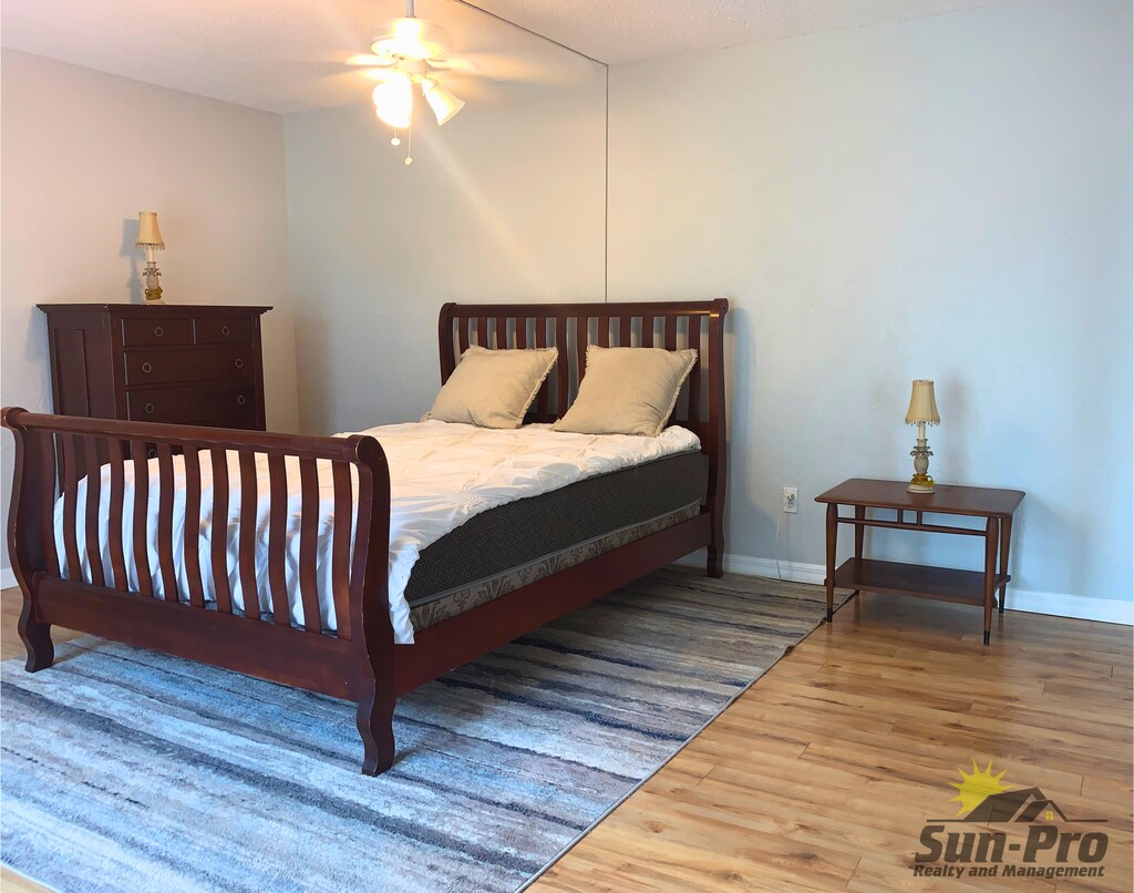 This charming 2-bed/2-bath home offers the perfect blend of comfort, convenience, and style in a well-maintained community. Step into a warm space featuring wood flooring throughout, a cozy fireplace, and a bright sunroom. The home is currently furnished but can be unfurnished upon request to suit your needs. You'll also enjoy the ease of indoor laundry, ceiling fans for added comfort, and a private fenced patio surrounded by neat landscaping. Lawncare is handled through the HOA. As a bonus, residents have access to a community pool, perfect for cooling off on sunny Florida days. Now offering flexible lease terms, choose between 6 to 12 months to fit your needs! Qualified applicants are encouraged to apply. $75.00 nonrefundable application fee per adult due up front. One month's rent security deposit, $150.00 administrative fee, and first month's rent required prior to move-in. All Sun-Pro Realty and Management residents are enrolled in the Resident Benefits Package which includes renters insurance, HVAC air filter delivery (for applicable properties), credit building to help boost your credit score with timely rent payments, $1M Identity Protection, move-in concierge service making utility connection and home service setup a breeze during your move-in, our best-in-class resident rewards program, and much more! More details upon application. This home is clean, comfortable, and move-in ready! Don't miss your chance to make it yours, schedule your tour today: