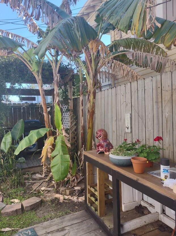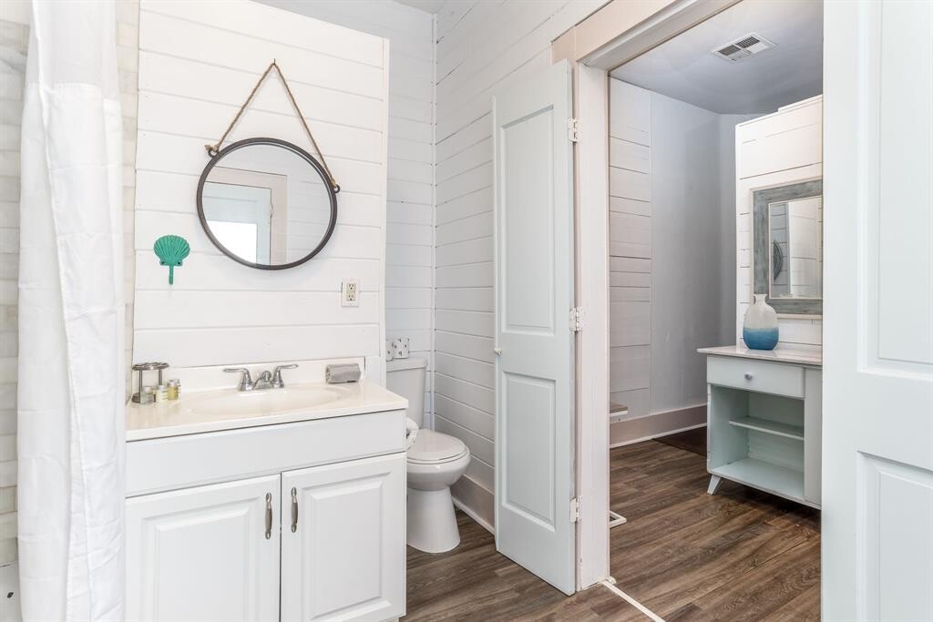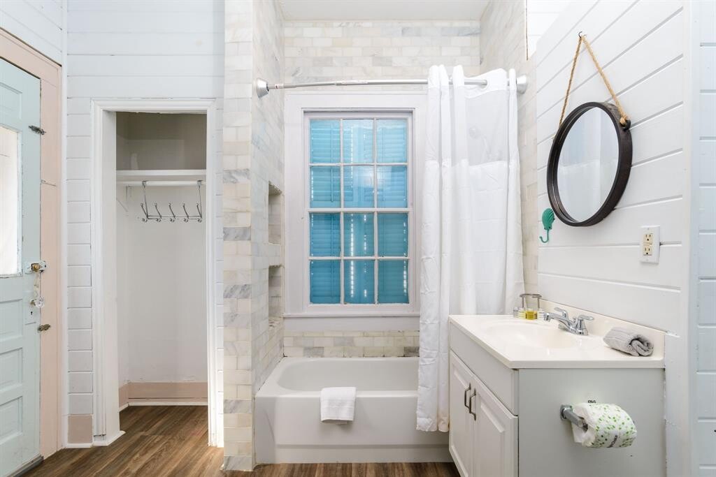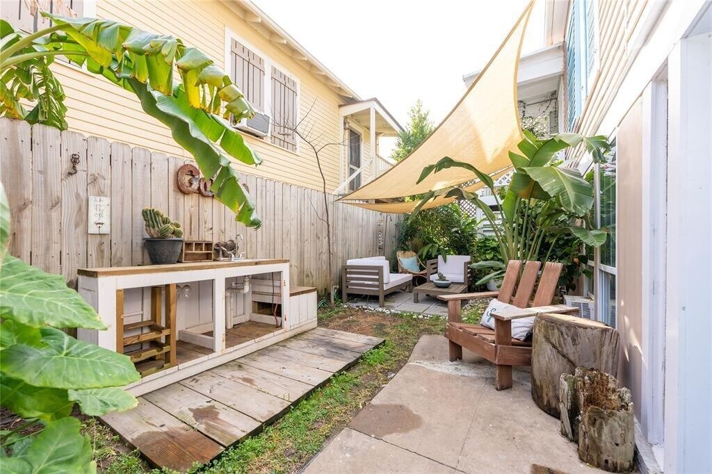 Acogedor casa a pocas cuadras de la playa en la ciudad de Galveston. La casa tiene dos niveles, siendo la planta superior el espacio habitable principal. Tanto arriba como abajo tienen cocinas totalmente equipadas con refrigerador y entradas separadas. La casa es adecuada para dos espacios de estar separados, cada uno con su propio baño y una puerta para separar la planta alta de la planta baja. Hay un patio lateral frondoso amueblado con un lavabo, un árbol de plátano que se está recuperando después de una escarcha invernal inusual, una parrilla a gas y también una ducha al aire libre y una carpintería adjunta adecuada para guardar. Hay un pequeño garaje adecuado para un automóvil, aunque es poco probable que un camión o SUV se adapte. El estacionamiento en la calle siempre está disponible y también hay una entrada para el estacionamiento. Actualmente tengo dos kayaks en el garaje disponibles para el/los arrendatario(s), aunque los puedo guardar en otro lugar si necesita el garaje. El nuevo techo se instaló en la primavera de 2022. La casa está en terreno relativamente alto para Galveston. El monumento local más cercano es Pennie's Tex-Mex, a una cuadra de distancia. La piscina Lasker está a una corta distancia a pie y la playa a unas seis cuadras. Los lugares más emblemáticos de la playa son Gumbo Diner y Gaido. La casa está disponible de inmediato, con plazos de arrendamiento flexibles. Los servicios públicos cuestan 200 USD al mes, o el inquilino puede asumirlos todos ellos.