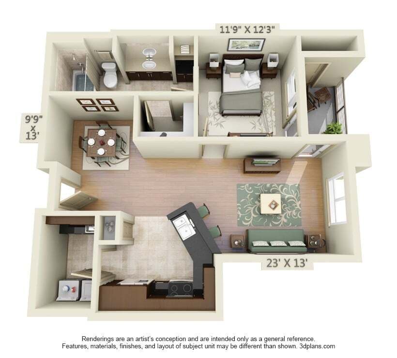 1 Dormitorio, 1 Baño, 982 pies²El más grandeEsta opción tiene las unidades más grandes para este modeloGalería del Modelo