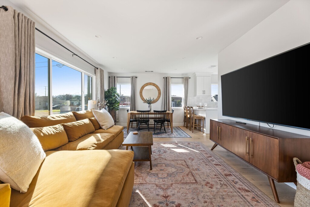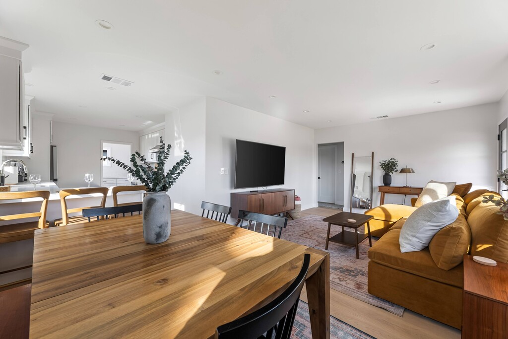 $6,507-AirBnB Value, 3-Bed/2-Bath; 3-4-Car Driveway; New Build; Luxury-Furnished; Quartz; Stainless; Wood Floor - "Beverly Hills of the Eastside" Security Deposit: $0 via Obligo or 1 month's rent Bedrooms: 3 Bathrooms: 2 Sq Footage: 1,150 Parking: 3-4 driveway spaces with free street parking Pet Policy: Allergy-friendly - no animals (strict, to provide reasonable accommodations for occupants with severe, disabling allergies) No smoking/vaping: Strict OCCUPANCY: Maximum 5 residents per local building/fire safety codes Quartz counters; chef's kitchen w/stainless appliances; 3 Smart TVs; designer furnishings; luxury floors; grass yard Keyless entry, exterior security cameras, 3-4-car driveway w/free street parking Near hospitals/transit/recreation Fiber internet 5 medical facilities within 1.5 mi 15 min to downtown Fully-permitted, earthquake-retrofit Easy access with only two (2) steps to enter the home VIRTUALLY NEW CONSTRUCTION: Unlike typical renovations in LA: Fully-permitted/inspected comprehensive renovation New systems and finishes (windows, copper plumbing, electrical, HVAC) New flooring, cabinetry, paint, doors, trim, stucco Permitted quality provides peace of mind Avoids unpermitted/unsafe conditions common in LA market PRESTIGE AND SAFETY: Located in historic Hillside Village Presidential: Distinguished neighborhood once hosted President Jimmy Carter Perfect blend of prestige and tranquility Earthquake retrofitting for superior seismic protection Critical safety features rarely found in Los Angeles homes PREMIUM KITCHEN APPLIANCES: Range/oven/stove, gas/electric, Samsung Bespoke 6.0-cu.ft., 5 gas burners Refrigerator with freezer, Whirlpool 19.4-cu.ft. Microwave, Samsung, 2.1 cu. ft. Dishwasher, Samsung, 48-dBA whisper quiet, 14-place-setting capacity Washer & dryer, LG 4.5-cu.ft. large clothes washer and 7.4-cu.ft. dryer Disposal, 1/2-Hp Moen LUXURY AMENITIES: Parking: 3-4 driveway spaces with free street parking Premium quartz countertops Luxury vinyl flooring throughout Zwilling professional knife collection Le Creuset artisanal cookware Pottery Barn, Crate & Barrel, and West Elm furnishings Energy-efficient double-pane windows Smoke and carbon monoxide detectors (safe/fully permitted) Dining space for nine (9) adults (table: six (6) + counter: three (3)) ENTERTAINMENT & WORKSPACE: 75" living room Smart TV 55" primary bedroom Smart TV 25" additional bedroom Smart TV High-speed fiber internet Dedicated work desk in one bedroom SECURITY/SAFETY FEATURES: Complete earthquake reinforcement meeting or exceeding building codes Five-camera, exterior-only monitoring system Motion-activated exterior lighting Keyless entry system Corner lot advantage UTILITIES/SERVICES INCLUDED: High-speed fiber internet Water and hot water Professional exterior landscaping maintenance Trash removal and sewage MEDICAL HUB: 0.3 mi: Los Angeles Medical Center 0.7 mi: Pacific Alliance Medical Center 1.4 mi: USC Keck Medical School 1.3 mi: Good Samaritan Hospital 1.5 mi: White Memorial Medical Center AREA ENHANCEMENTS: Part of a projected $80M Valley Boulevard enhancement project featuring: New protected bike lanes Enhanced pedestrian lighting 1,800 new trees Lincoln Park expansion Cultural landmark preservation NEARBY AMENITIES: 0.6 mi: Lincoln Park: Tennis, playgrounds, duck pond, picnic areas, walking paths 1.6 mi: Cal State LA Performing Arts 4.0 mi: Walt Disney Concert Hall 4.6 mi: DTLA Arts District 15-minute commute to downtown Los Angeles TRANSPORTATION: 0.1 mi: 76 Metro Local Bus Line 0.3 mi: El Sereno/City Terrace DASH Bus 1.0 mi: Metrolink San Bernardino Line FITNESS/RECREATION: 0.7 mi: Lincoln Park Pool (outdoor) 0.8 mi: USC HSC Fitness Center 1.3 mi: Richard Alatorre Pool (indoor) DINING & COFFEE (within 2 mi): Holy Grounds Coffee and Tea La Terraza Cafe Barrio (Italian) The Heights Deli & Bottle Shop San Antonio Winery THE CHOICE IS CLEAR: In a market saturated with questionably-safe renovations, this meticulously rebuilt home offers documented quality at every turn. The combination of earthquake retrofitting, premium appliances, and designer furnishings creates an exceptional living experience rarely found in Los Angeles homes.