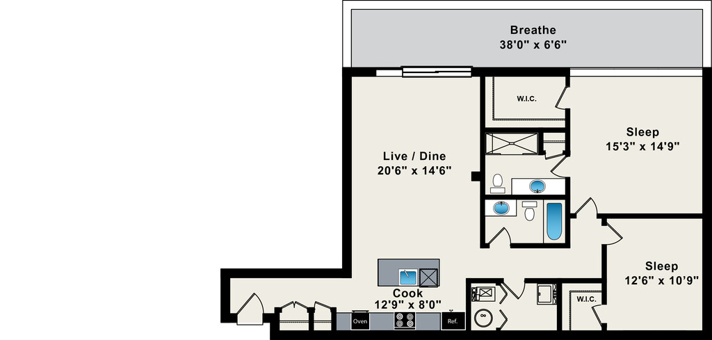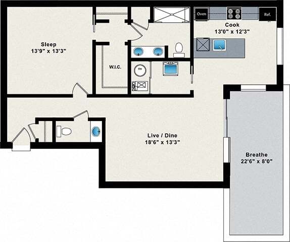 1 Dormitorio, 1.5 Baños, 995 pies²Galería del Modelo