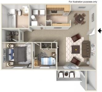 2 Dormitorios, 1 Baño, 847 pies²Disponible AhoraGalería del Modelo