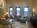 Newly renovated furnished one bedroom with parking on Main Street in the heart of downtown Dubuque. 3rd floor unit with parking on site. Great modern layout with walk in closet and plenty of room to relax. Yoga studio on main floor and steps from everything great in Dubuque.