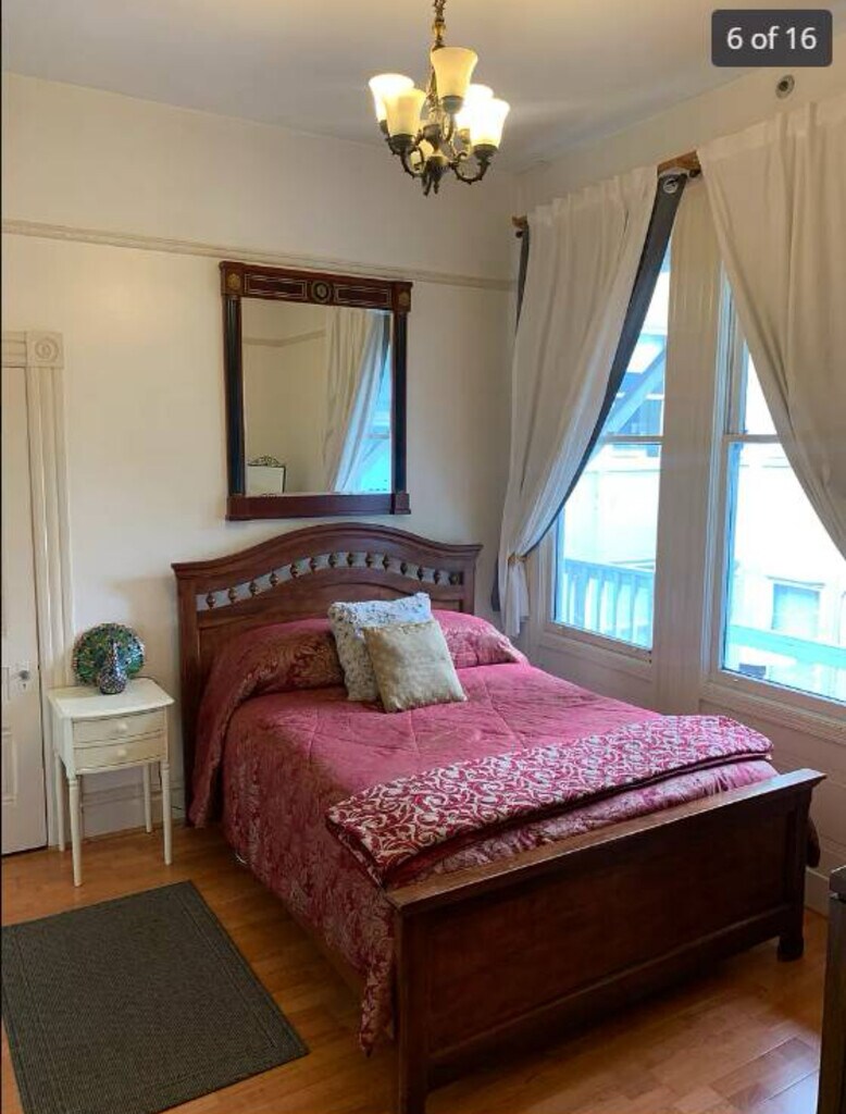 Cheery, cottage-like garden apartment in a 4 unit Victorian, with separate entrance. Located in vibrant Cow Hollow, this apartment is the upper-floor, rear garden facing-unit in one of San Francisco's charming ‘painted ladies’. A quiet timeless sanctuary where you can relax….and dream…. Natural light streams in from East, West and South, with views of trees & gardens from windows in every room. On the eastern side is an office nook. Quiet rear garden with sundeck & brick patio, extend the use of this apartment. Recently installed double-glazed windows enhance the serene environment. Efficient gas-operated heater keeps the apartment warm in winter. Renovated kitchen and living spaces, with warm oak flooring throughout, make this peaceful home a joy to live in. One to three blocks away, fashionable Union, Chestnut & Fillmore Streets offer a plentiful choice of restaurants, shops, gyms & yoga facilities, while Safeway, Trader Joes, beautiful parks, and the beach are within easy walking distance as well. We welcome socialised pets in the building. Onsite Parking for one regular car is negotiable.