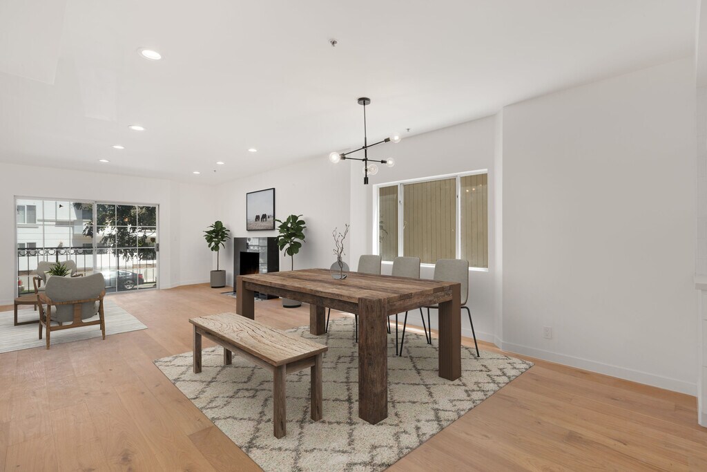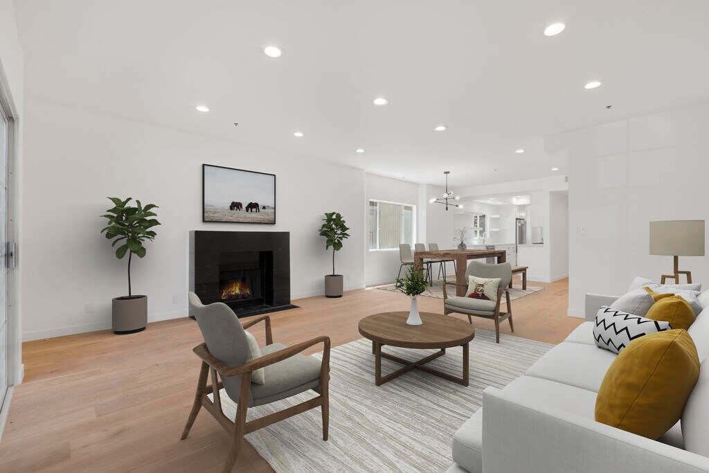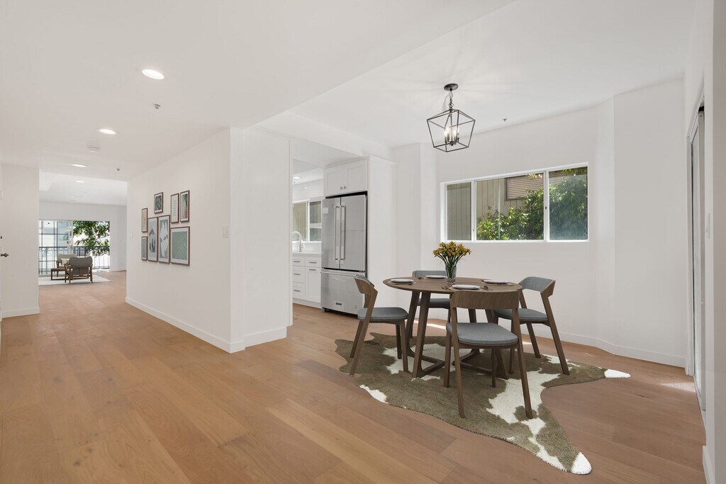 Stunning Remodeled Condo situated in truly one of the best locations! The owner spared no expense tastefully remodeling this modern end unit that spans the length of the building creating privacy and extra windows providing tons of natural light! The open floor plan offers a fabulous living room with recessed lights & cozy fireplace leading to a large balcony! Amazing gourmet chef's kitchen w/ newer stainless appliances! Gorgeous primary suite w/private bath featuring a freestanding soaking tub, dual sinks and beautiful marble design! Large dual closets and French doors leading to a private patio w/ access to garage! Custom built-in workspace for those who like to work from home! Personal washer/dryer in unit! Newer HVAC system! Perfect location just steps away from dining, theater, UCLA, Westwood, Westfield Shopping Mall, Sawtelle Blvd and much more!!!!