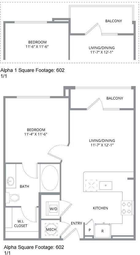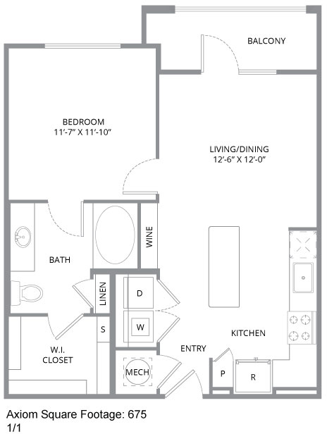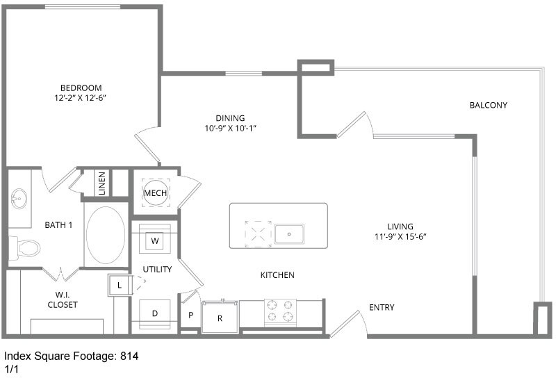 1 Dormitorio, 1 Baño, 602 pies²Disponible AhoraGalería del Modelo