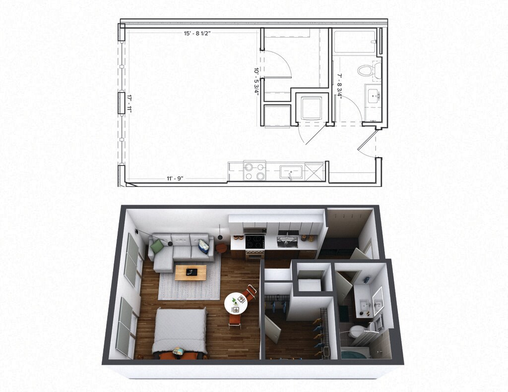 Studio S1 - Plano Unidad de apartamento: 301Modelo de apartamento: Studio S1$1,477Estudio, 1 Baño, 522 sq ftDisponible Ahora![]()