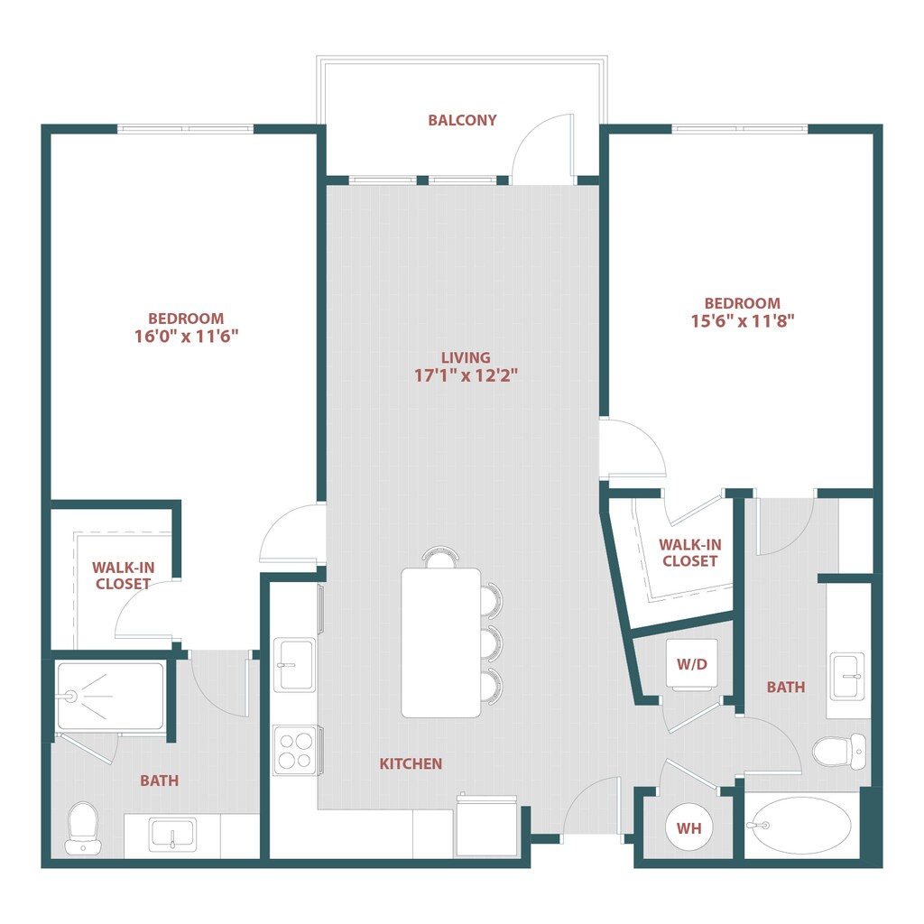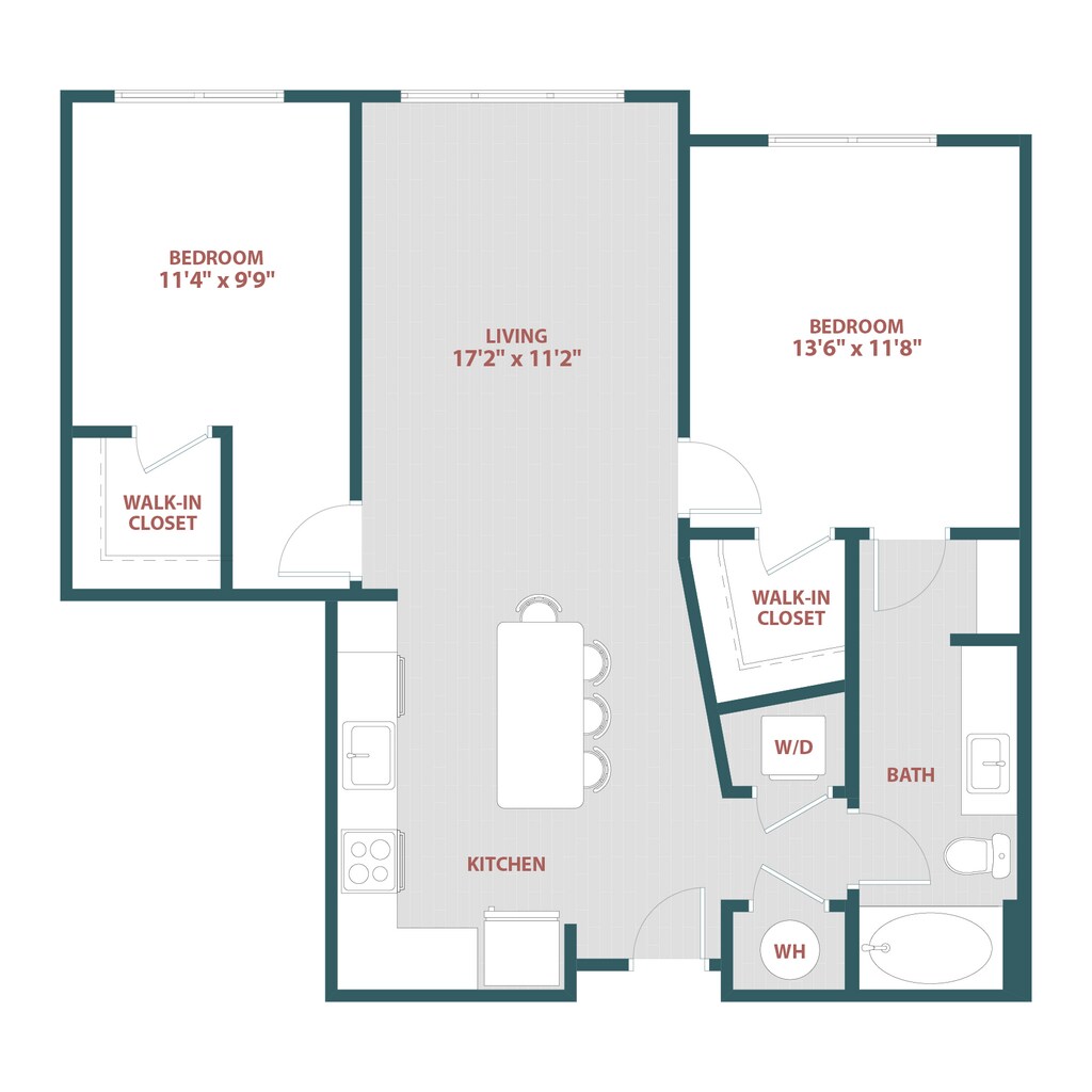 Modelo de apartamento: A2Desde $1,4861 Dormitorio, 1 Baño, 785 sq ftDisponible Ahora![]()