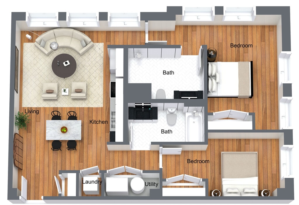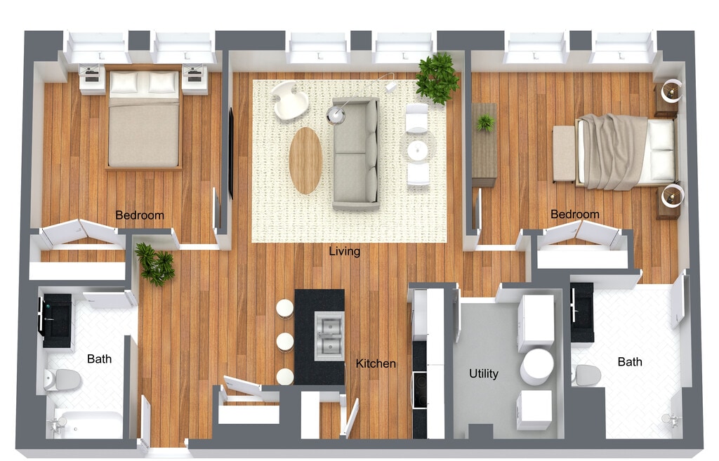 2 Dormitorios, 2 Baños, 1171 pies²Disponible AhoraGalería del Modelo