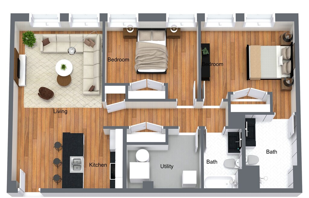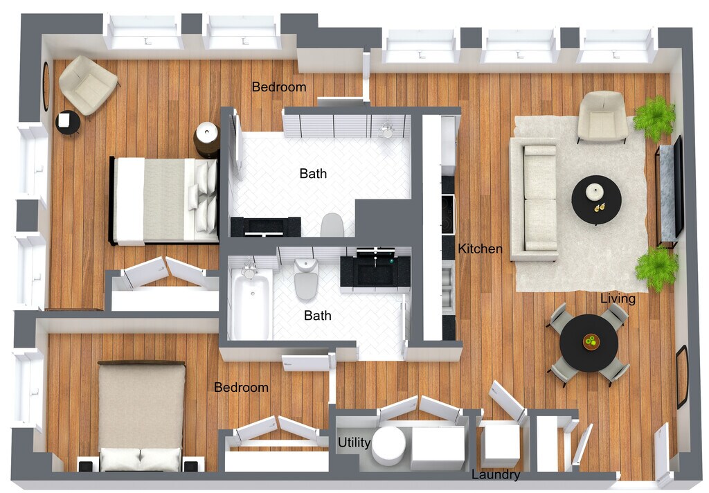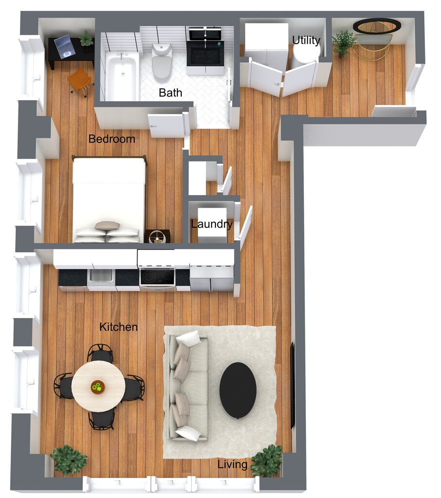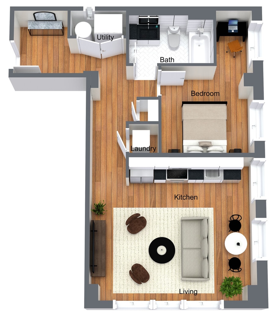 1 Dormitorio, 1 Baño, 755 pies²Disponible AhoraGalería del Modelo