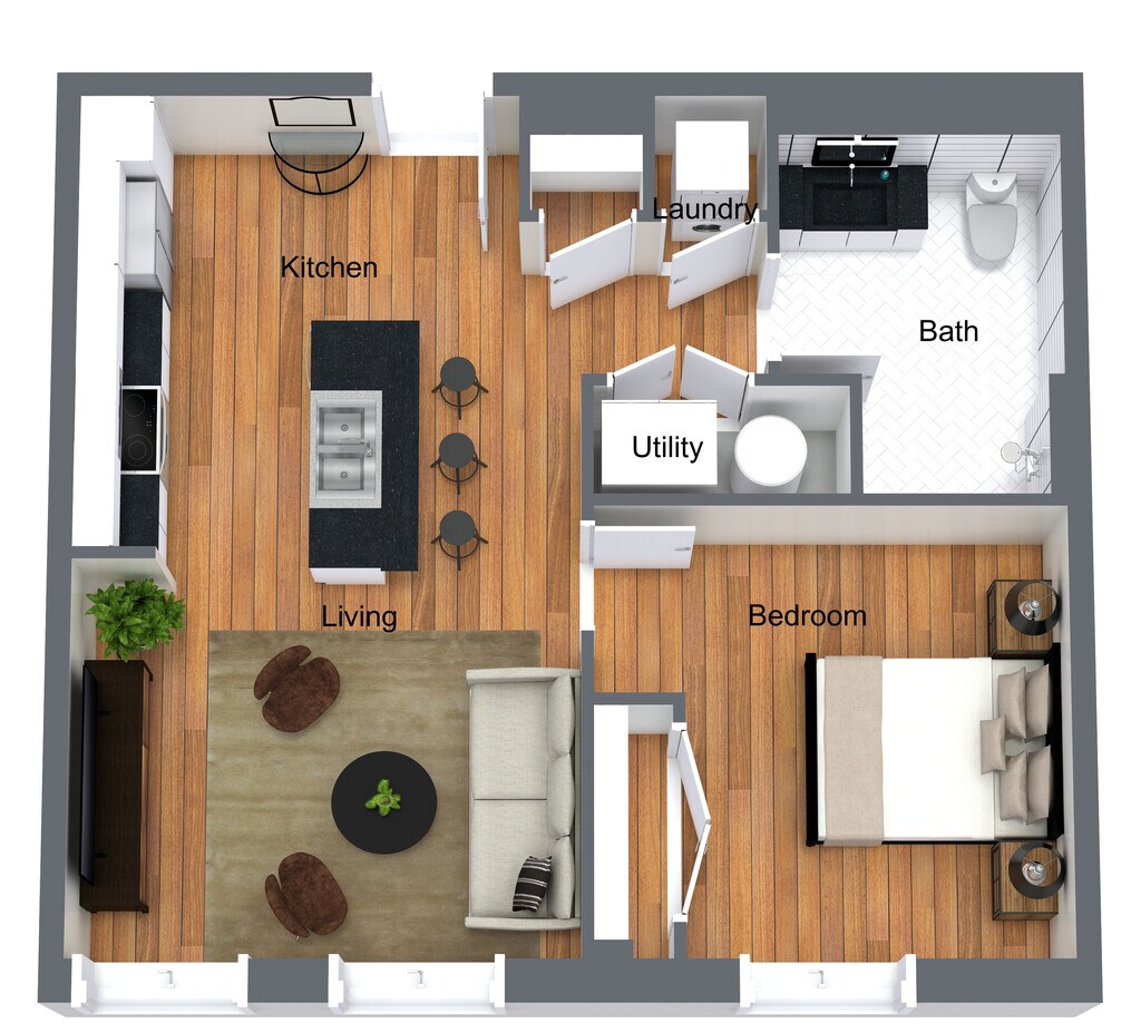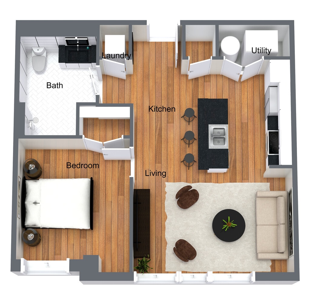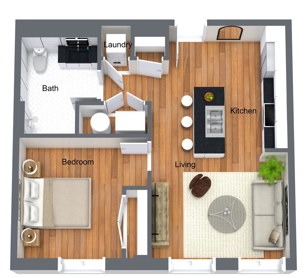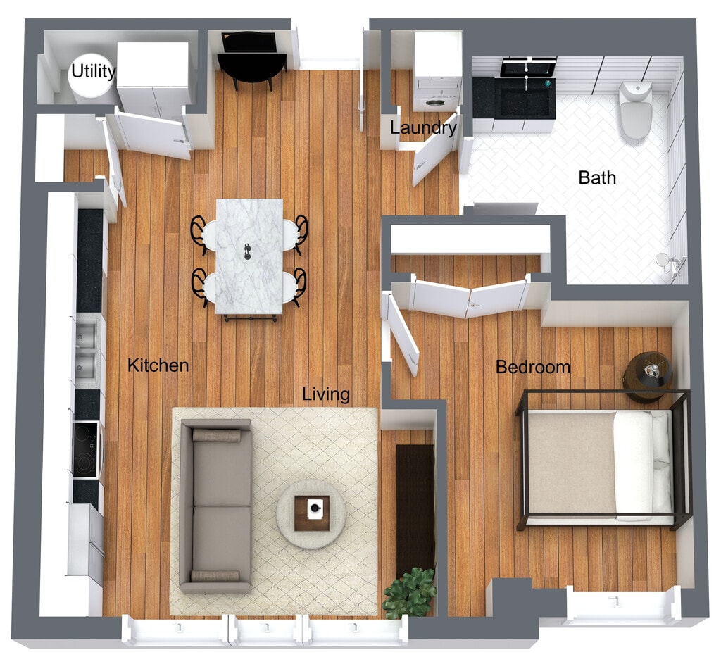 1 Dormitorio, 1 Baño, 755-791 pies²Disponible AhoraGalería del Modelo
