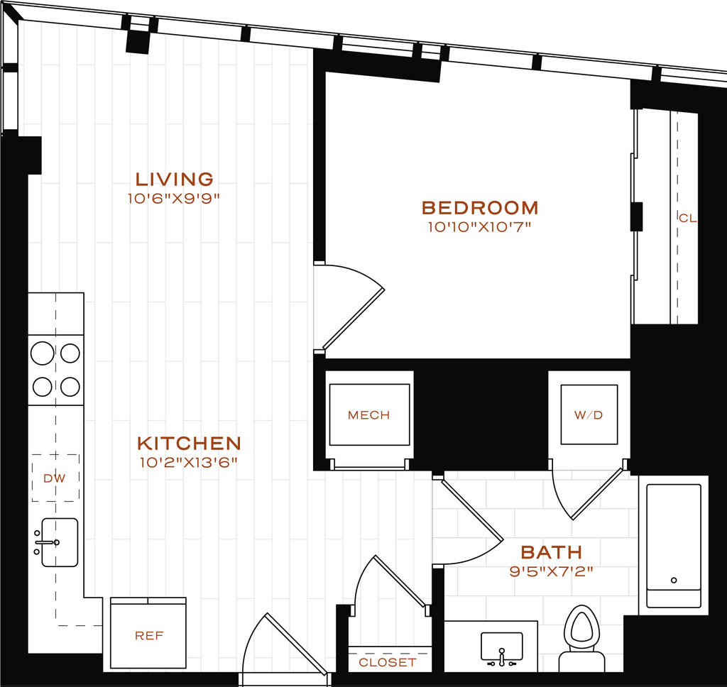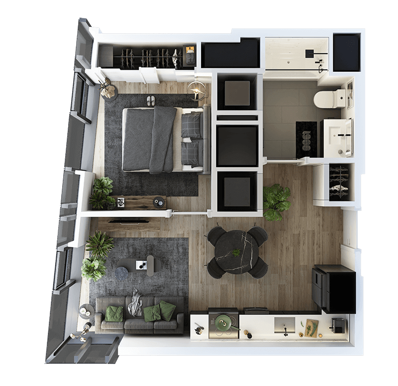 1 Dormitorio, 1 Baño, 673 pies²Disponible AhoraGalería del Modelo