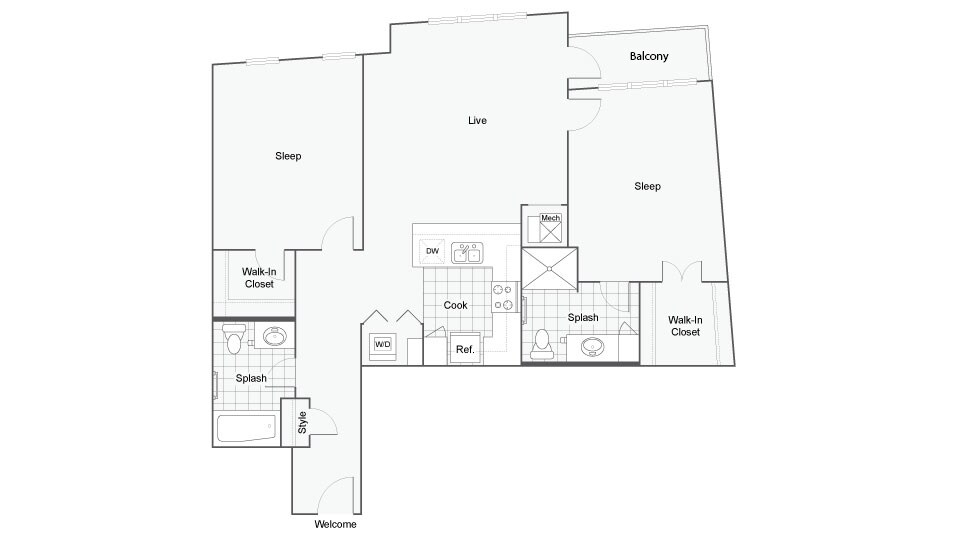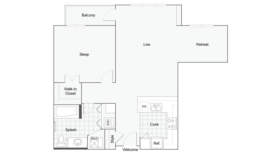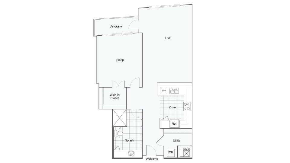1 Dormitorio, 1 Baño, 690 pies²Disponible AhoraGalería del Modelo