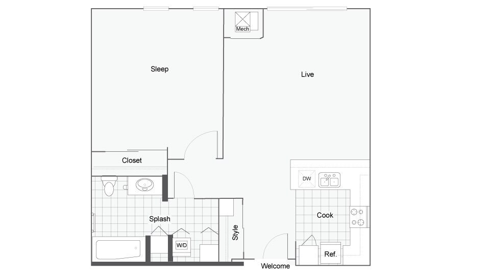 The Silver Spring - Plano 1 Unidad de apartamento: 201Modelo de apartamento: The Silver Spring$1,300Estudio, 1 Baño, 544 sq ftDisponible January 7, 2026The Hoan