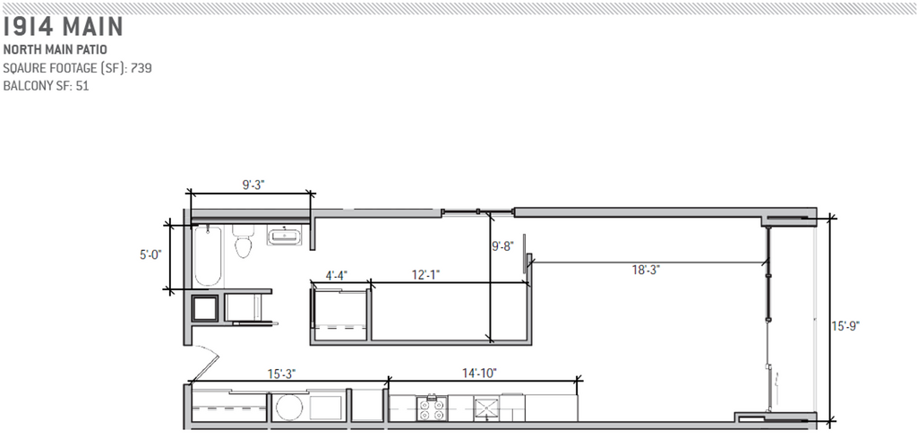2East I Floor Plan - Plano 1 1BR/1.0BA