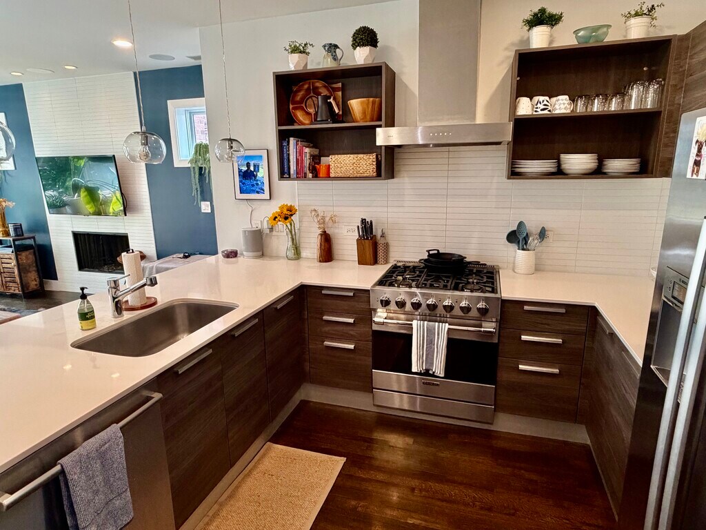 Tucked away on a peaceful, tree-lined block in the heart of Wicker Park, this stylish 2 bed / 2 bath condo blends modern comfort with luxury finishes. Soaring 9-foot ceilings and oak hardwood floors set the tone for a bright, open living space filled with natural light. The chef-inspired Italian kitchen features quartz countertops, a Viking range, Bosch appliances, and direct access to a private side balcony ideal for grilling. The primary suite offers a spa-quality retreat with heated floors, a steam shower, and body sprays accented by Toto and Hansgrohe fixtures. A spacious rear deck is perfect for entertaining or relaxing outdoors, and a private storage unit adds convenience. -- Property Management firm requires mandatory Resident Benefit Package additional $40.00 per month; includes renters insurance, positive credit reporting for on-time rental payments, identity fraud protection and more. Presented by Fulton Grace Realty, Chicago, IL.