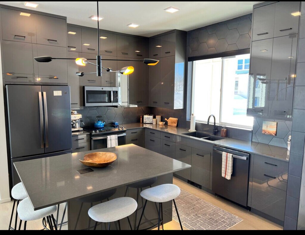 ¡Te encantará este hogar! Tire hacia arriba en la entrada o en el garaje adjunto, lo que facilita la descarga. Ingrese por código a su hogar moderno, inmaculado y bien pensado: una cocina completamente abastecida, electrodomésticos de alta gama, una máquina de café espresso para cafés con leche por la mañana y elegantes asientos isleños para cuatro personas. Maderas en toda la suite, luz natural, mesa de comedor para tres personas. Suba a los dormitorios del segundo piso para dormir sobre sábanas y sábanas de calidad, disfrute de una terraza privada junto al dormitorio principal + una oficina del tercer dormitorio con espectaculares vistas a las montañas. El espacio Relájese y disfrute de los sofás extragrandes, las cómodas sillas modernas y el televisor de pantalla grande en la acogedora sala de estar. Salga al exterior para disfrutar del amanecer/atardecer desde los patios delanteros y traseros, una parrilla para las noches de barbacoa y sofás al aire libre para entretener a sus amigos. El amplio y moderno baño principal cuenta con una enorme ducha independiente con azulejos y puertas de vidrio con dos cabezales, además de espejos del piso al techo y muchos cajones para sus pertenencias. Lavadora/secadora extragrande en el segundo piso. Iluminación automática al entrar en los baños, altavoces de sonido envolvente, almacenamiento en el garaje... ¡este hogar casi nuevo tiene un aspecto verdaderamente fresco y moderno! Duerma como una reina (o rey). Persianas opacas motorizadas por toda la habitación, accesorios modernos, ventiladores de techo para el dormitorio, iluminación automática al entrar al baño, ¡todo lo hace sentir visto! Entrada sin llave, los televisores ofrecen Hulu, Apple TV, etc. y disfrutan del termostato Nest. Este hogar le garantiza que se sentirá cómodo, seguro y tranquilo. Senderos para correr por la puerta, a cuadras del hospital, ¡en bicicleta hasta el centro de la ciudad en 10 minutos! ¡Una vida saludable en su máxima expresión!