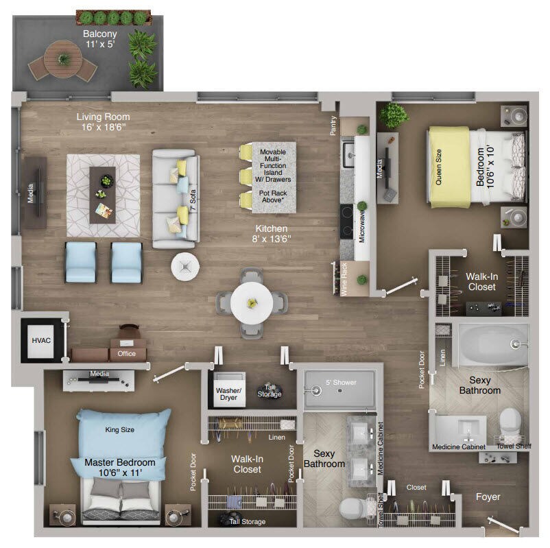 Estudio, 1 Baño, 500 pies²Disponible AhoraGalería del Modelo