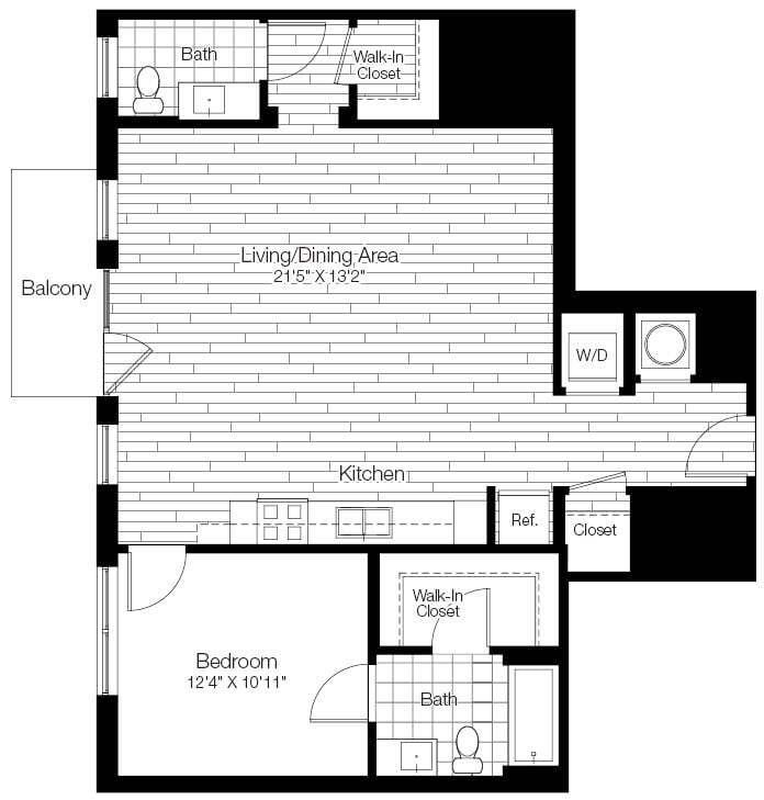 1 Dormitorio, 1 Baño, 620 pies²Disponible AhoraGalería del Modelo