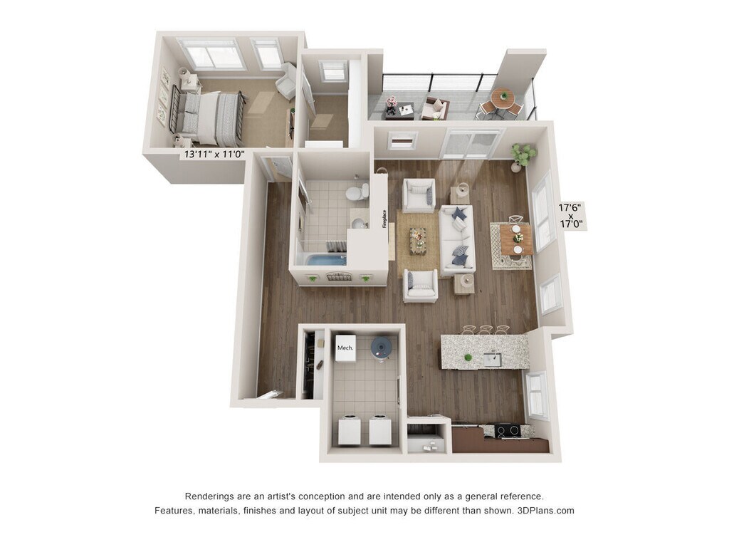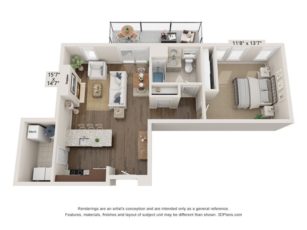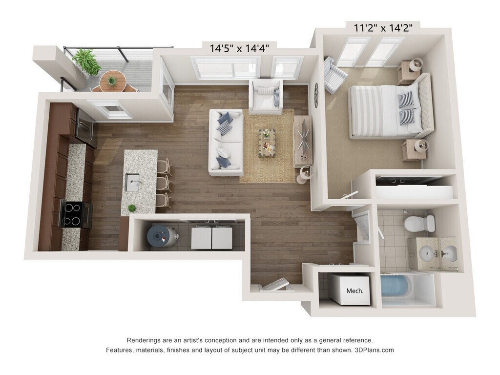 1 Dormitorio, 1 Baño, 757 pies²Galería del Modelo