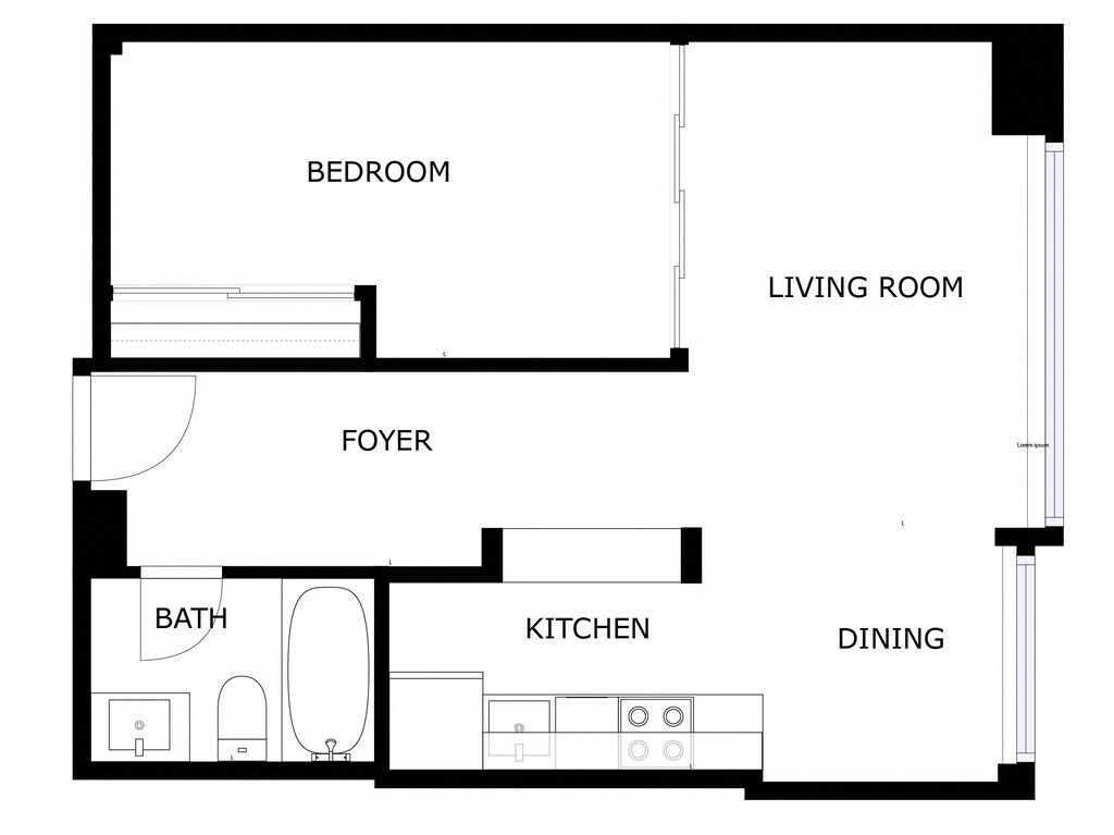 Modelo de apartamento: Renovated 1 Bed, 1 Bath1 Dormitorio, 1 Baño, sq ftDisponible October 17, 2025Los planos de la planta son una interpretación artística. Todas las dimensiones son aproximadas. Los tamaños o el detalle del producto real y sus especificaciones pueden variar. No todas las características están disponibles en todos los hogares para rentar. Los precios y la disponibilidad están sujetos a cambios. El alquiler que se muestra es mensual. Se pueden aplicar ciertos cargos, por ejemplo, entrega de paquetes, recolección de basura, agua, servicios, etc. Depositos varian. Consulta a un representante para conocer detalles.