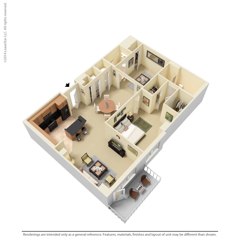 1 Dormitorio, 2 Baños, 858 pies²Disponible AhoraGalería del Modelo