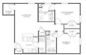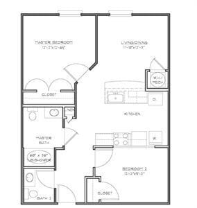 Modelo de apartamento: B1$1,5082 Dormitorios, 2 Baños, 800 sq ftDisponible Ahora![]()