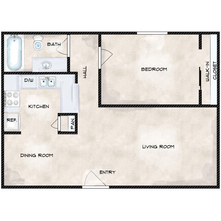 Modelo de apartamento: A1 - 1/11 Dormitorio, 1 Baño, 650 sq ftNo Disponible![]()