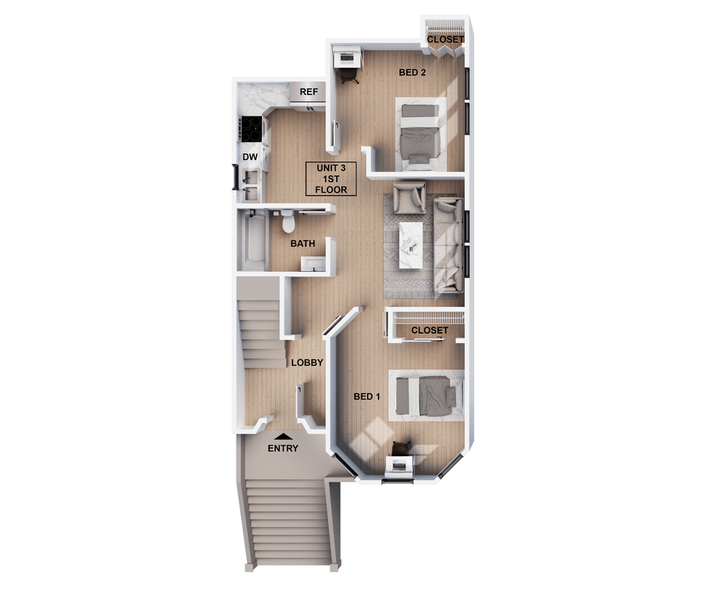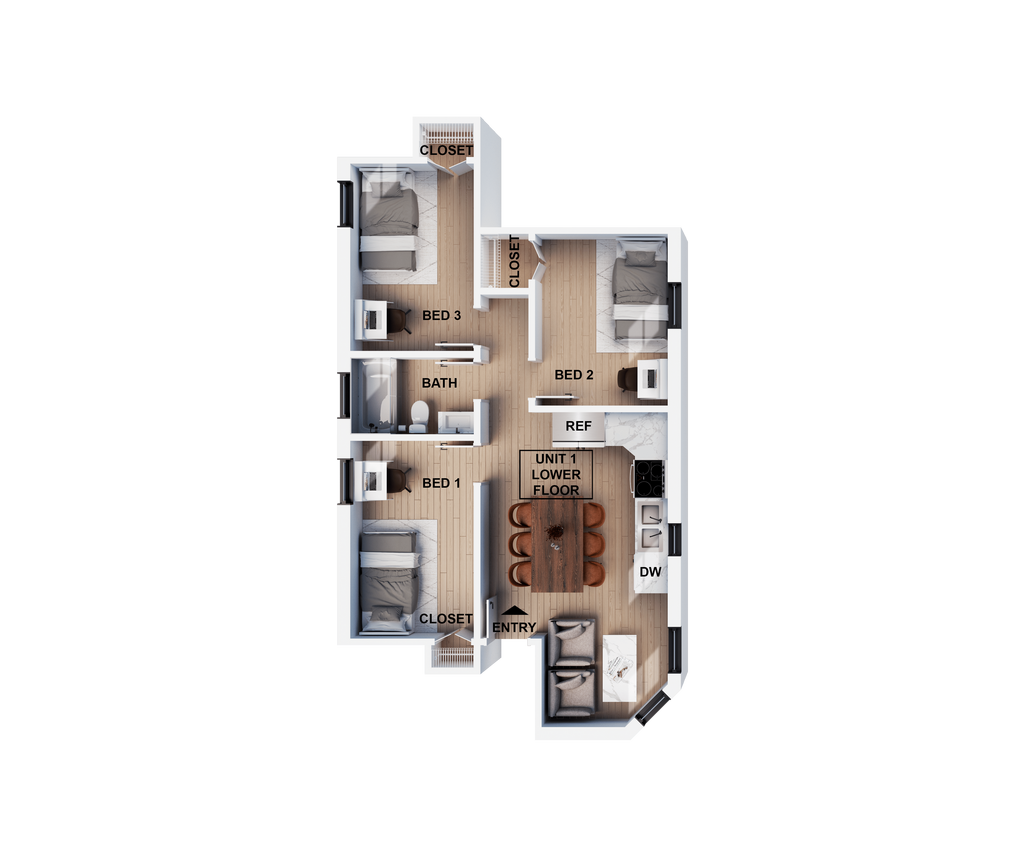 Unidad: 05 - Imagen 1 Unidad de apartamento: 02Modelo de apartamento: 3 Bed 1 BathDesde $3,8953 Dormitorios, 1 Baño, 630 sq ftDisponible June 4, 2026