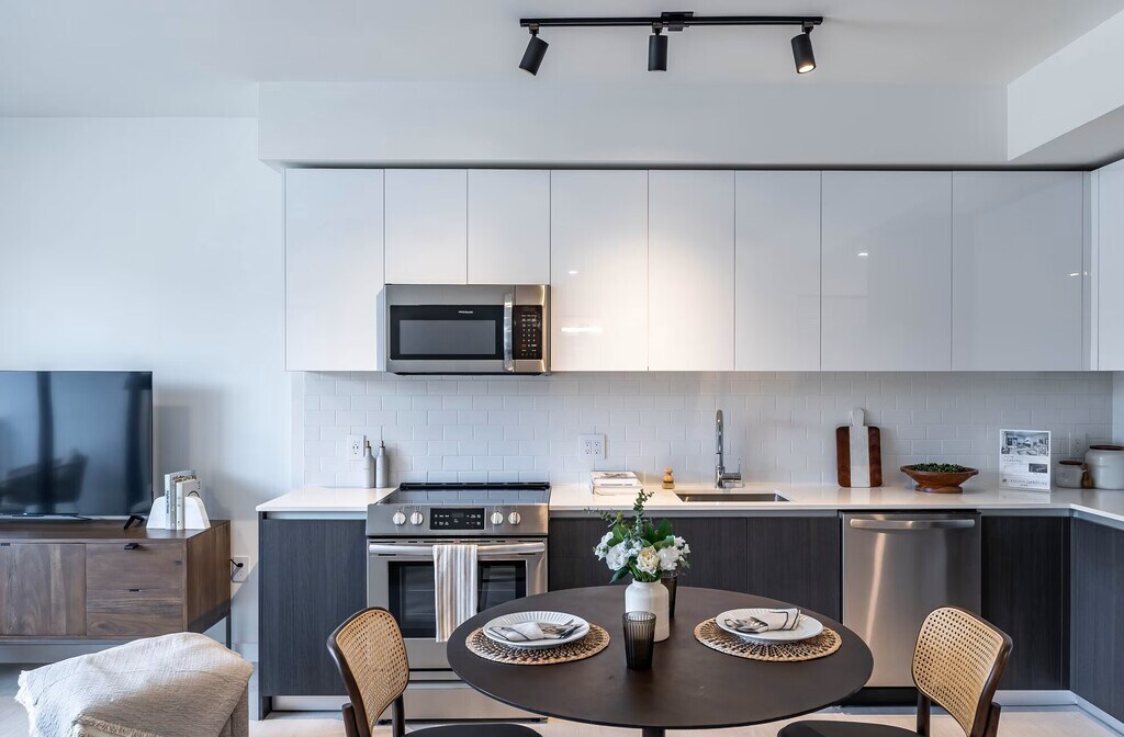 Step into a modern living experience designed for comfort, style, and convenience. These thoughtfully designed residences feature spacious open floorplans, sleek quartz countertops, modern cabinetry, and 10-foot ceilings that enhance the airy atmosphere. Smart home features and Wi-Fi connectivity keep you seamlessly connected, while impact-rated windows and doors offer safety and peace of mind. Enjoy elegant vinyl flooring throughout, in-home washer and dryer, energy-efficient Frigidaire appliances, and walk-in closets that combine functionality with contemporary design. Each unit includes a private balcony perfect for unwinding after a long day or enjoying the outdoors from the comfort of your home. Beyond your front door, a full suite of upscale amenities awaits. Take advantage of a resort-style lap pool, a rooftop lounge with entertainment space, and a summer kitchen with BBQ grills ideal for hosting or relaxing. Stay productive in the fully equipped co-working center with private office suites, or break a sweat in the state-of-the-art fitness center and flex room. Outdoor lovers will appreciate the lakeside walking and running trail, while pet owners can enjoy the on-site dog park. Additional conveniences include private garages, EV charging stations, and secure access throughout the property.