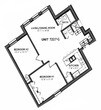 2 Dormitorios, 1 Baño, 555 pies²Galería del Modelo