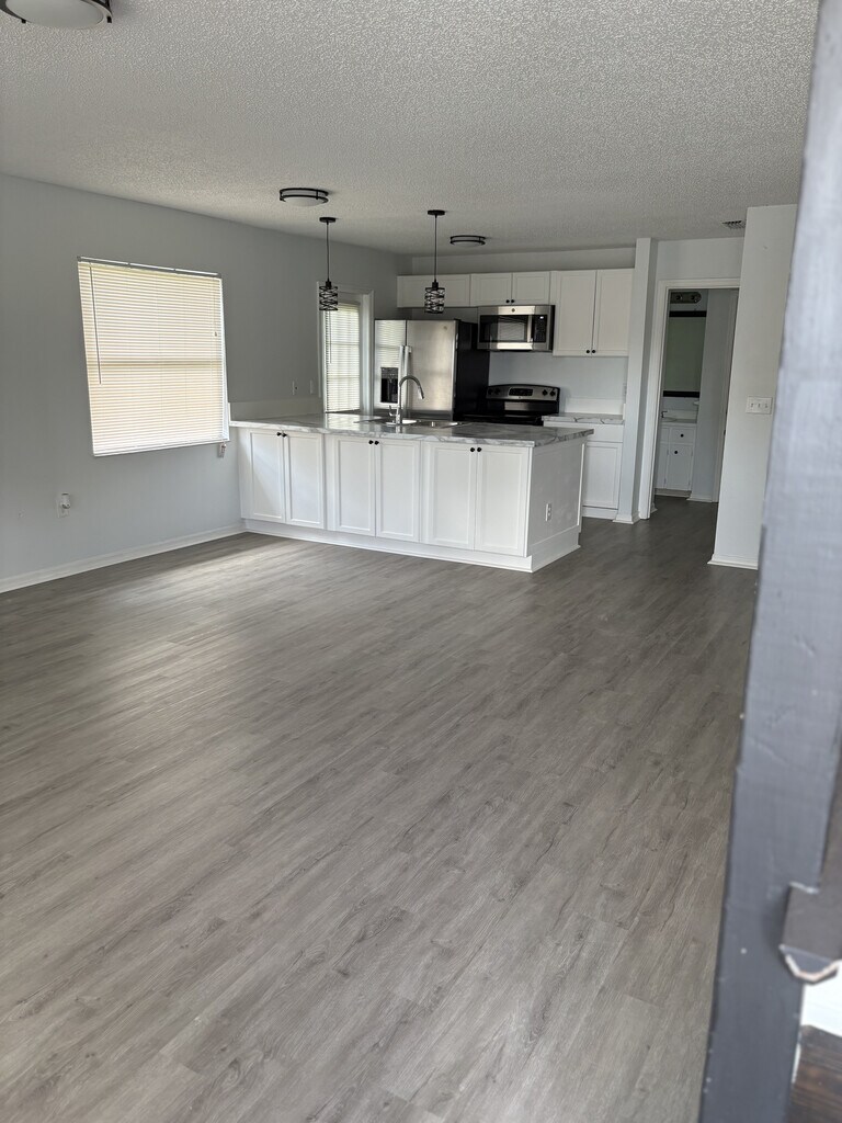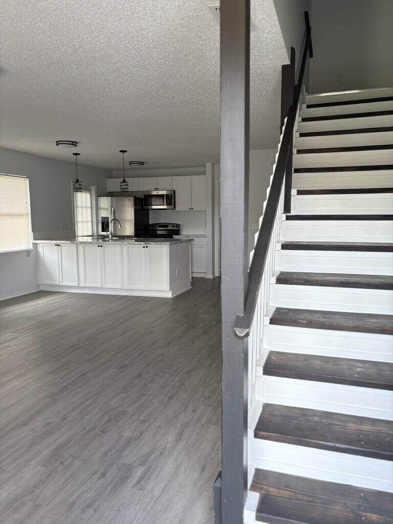 Freshly renovated 2 story townhome/duplex in North Lakeland. Close to I-4, Sandpipers Golf & Country Club and Lakeland Square Mall. Home is a 3 bedroom, 2 bath + garage. Luxury-vinyl plank flooring throughout. The primary bedroom is on the main floor. Upstairs are 2 bedrooms with a full bath separating the bedrooms. Perfect layout with so much storage. Fresh paint inside and out and new LED light fixtures. Kitchen island features a stainless steel sink with new pull-down sprayer faucet. All stainless steel appliances include refrigerator, stove, microwave and dishwasher. Cabinets line both sides for an abundance of storage and room for bar stools for additional seating. Brand new cabinets and countertops. The open floorplan is highlighted by the gorgeous staircase with java stained treads and white trimmed risers. Bathroom vanities are spacious and modern and all bedroom closet doors have an exquisite and space saving design.