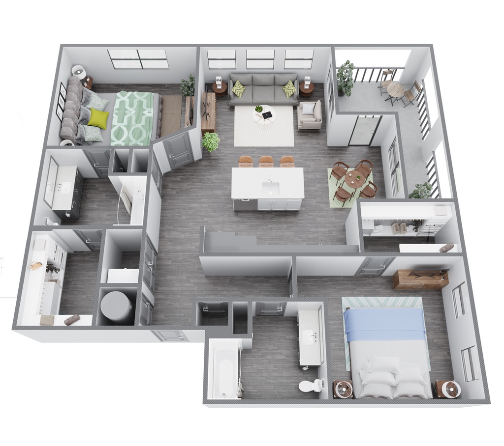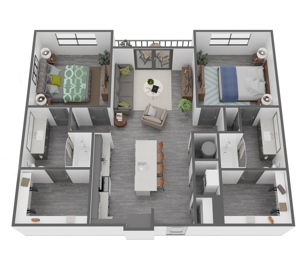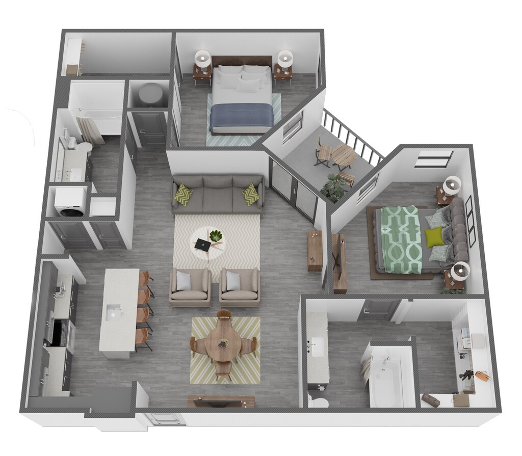 Modelo de apartamento: B1b$1,9652 Dormitorios, 2 Baños, 1071 sq ftDisponible Ahora![]()