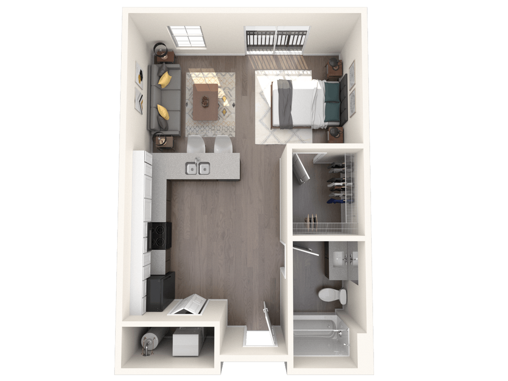 Estudio, 1 Baño, 531-606 pies²Disponible AhoraGalería del Modelo