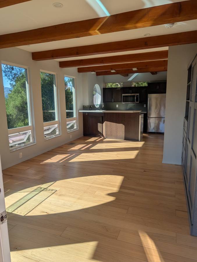 Revitalize your senses and nurture your well-being in this custom, designer studio, a peaceful haven with stunning views of the Los Gatos Mountains - All Utilities Included! This modern, 500 sq. ft. studio offers a mountain lodge feel with exceptionally high-end finishes, nestled on an incredibly sunny and peaceful mountainside property. Experience abundant sunshine even during the winter months and truly stunning sunsets every single day. Located on Laurel Rd., near Aldercroft Heights, this space provides the perfect blend of comfort, style, and natural beauty. It's an ideal retreat for a single, stable professional or student. Studio Highlights * All-Inclusive Rent: At $2,400/month, the rent covers all utilities, making budgeting simple and stress-free. * Modern Design & High-End Finishes: Step inside a bright, airy space with an abundance of windows that frame stunning hillside views. The studio features sleek hardwood floors and an abundance of natural stone and glass tile. * Space-Saving Murphy Bed: A full-size Murphy bed cabinet allows you to effortlessly transform the living area into a comfortable bedroom at night, maximizing your usable space during the day. * Compact Gourmet Kitchen: The kitchenette is equipped with a glass-top range stove, a microwave built into the cabinetry, and a mini dishwasher. A stylish kitchen bar provides the perfect spot for dining or working. * In-Unit Laundry: Enjoy the convenience of a private washer and dryer right in your studio. * Comfort & Climate Control: Stay comfortable year-round with both a heater and air conditioning. * Private Outdoor Space: Unwind on your private balcony, perfect for enjoying your morning coffee or the daily, breathtaking sunset. The property also features a small garden area. * Contemporary Bathroom: The bathroom is equipped with a gorgeous shower, sink, cabinet, and an energy-efficient toilet. Important Details * Lease Term: Flexible 6 or 12-month lease options are available. * Security Deposit: $2,400 * Availability: Ready for immediate move-in. * Ideal Tenant: This studio is best suited for those living alone. No pets are preferred. * Neighborhood & Accessibility: The home is nestled on peaceful, winding mountain roads. You must be comfortable with reversing uphill when necessary. While the streets are not lit, they offer a tranquil, dark sky experience perfect for stargazing. Due to the angled mountain and cement stairs, the tenant should be in good health and have stable balance to carry groceries and personal items. * Parking: A dedicated covered carport and private driveway space are included. * Noise & Privacy: The studio is attached to a semi-retired couple's home. It is mostly quiet, though occasional construction and tree trimming noise in the mountains may occur. * Commute: * Downtown Los Gatos: 6 miles (10-15 minutes) * Ocean Avenue, Santa Cruz: 21 miles (30 minutes) For more information or to schedule a private viewing, please email us.
