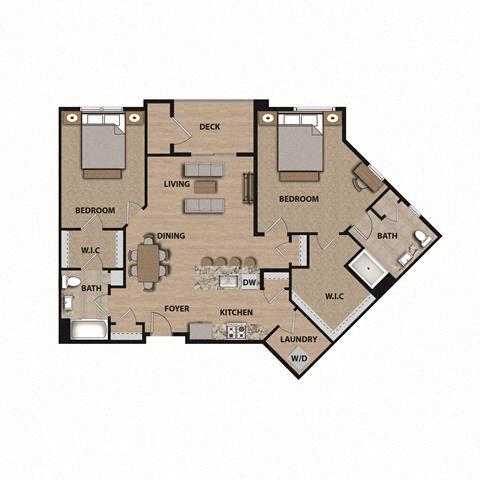 2 Dormitorios, 2 Baños, 1026 pies²Precio Mensual TotalDisponible AhoraGalería del Modelo