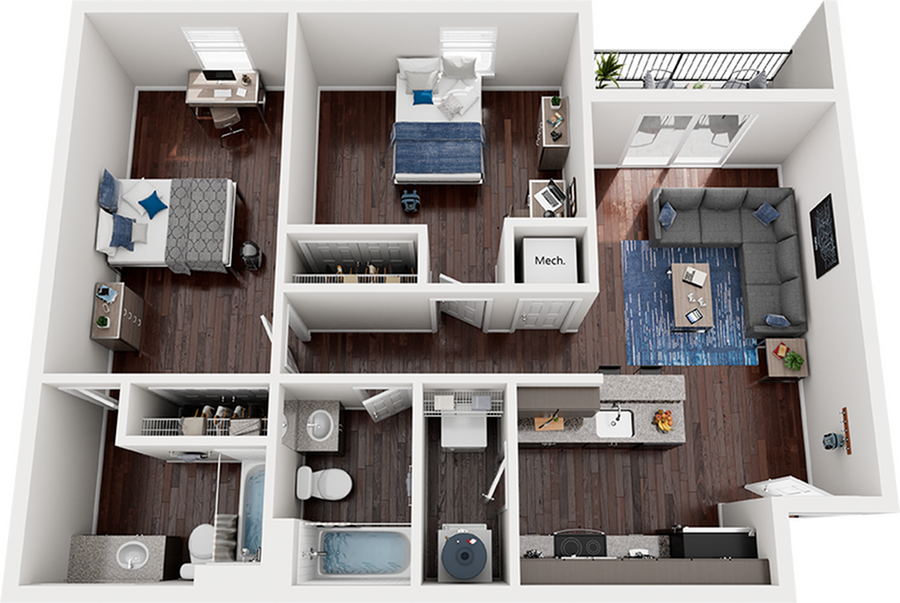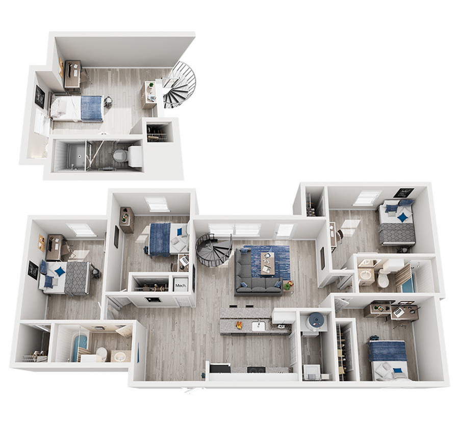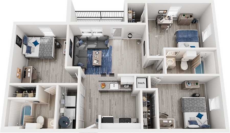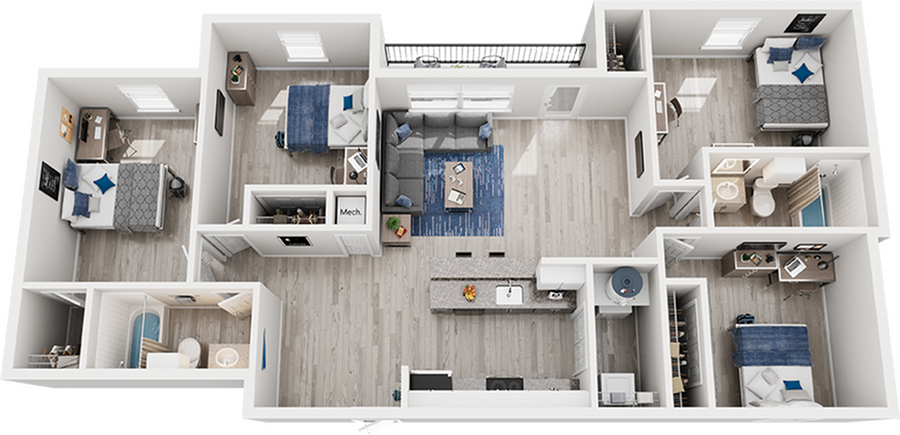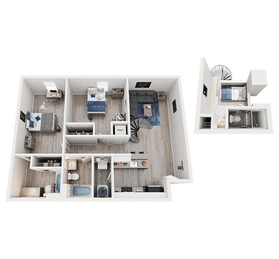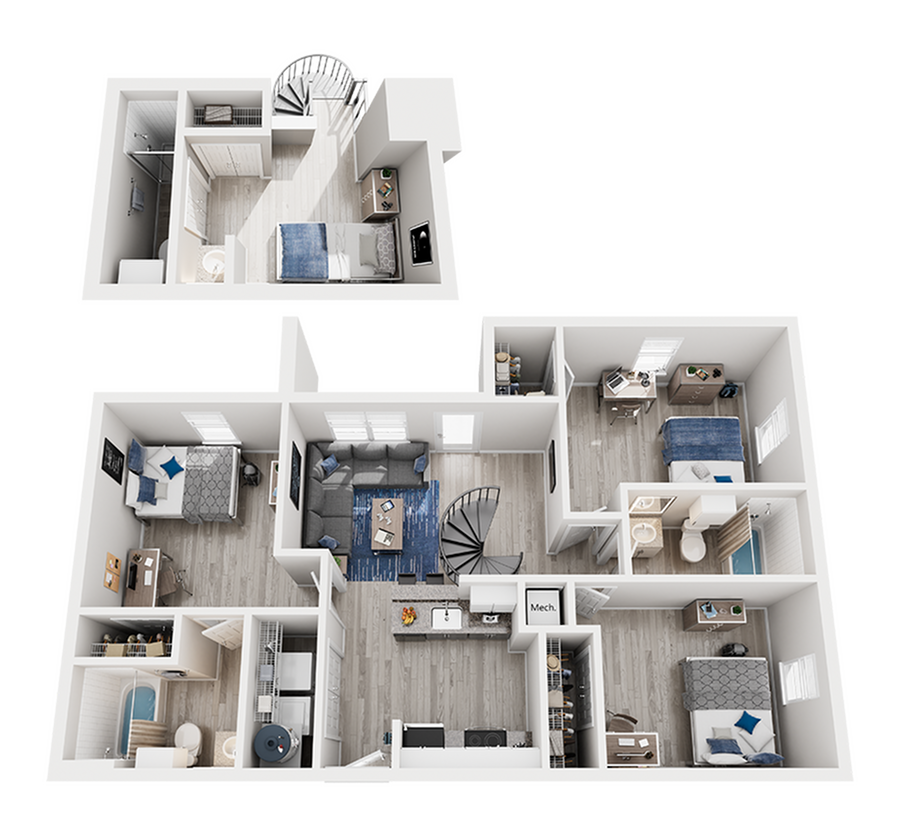 Modelo de apartamento: 4 Bed x 3 Bath Loft4 Dormitorios, 3 Baños, 1567 sq ftDisponible August 17, 2026![]()