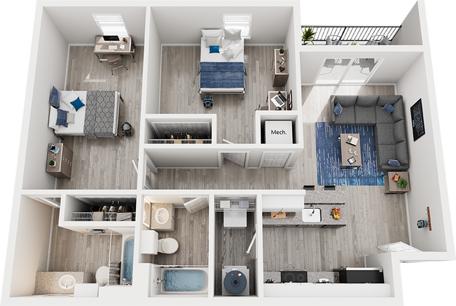 Modelo de apartamento: 3 Bed x 3 Bath Loft3 Dormitorios, 3 Baños, 1165 sq ftDisponible Ahora![]()