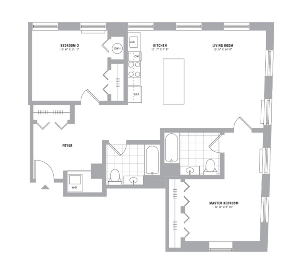 Modelo de apartamento: 1.1BDesde $2,4951 Dormitorio, 1 Baño, 992 sq ftDisponible Ahora![]()