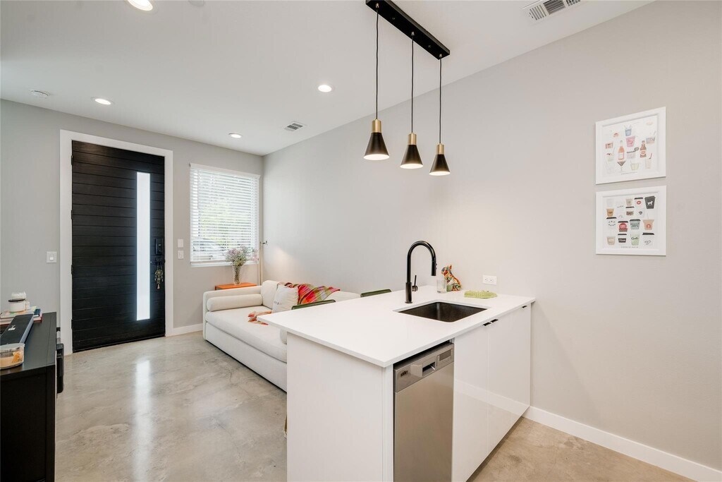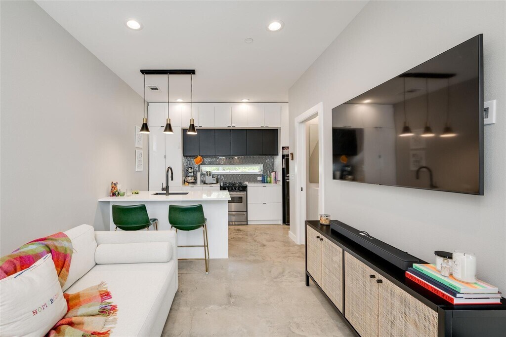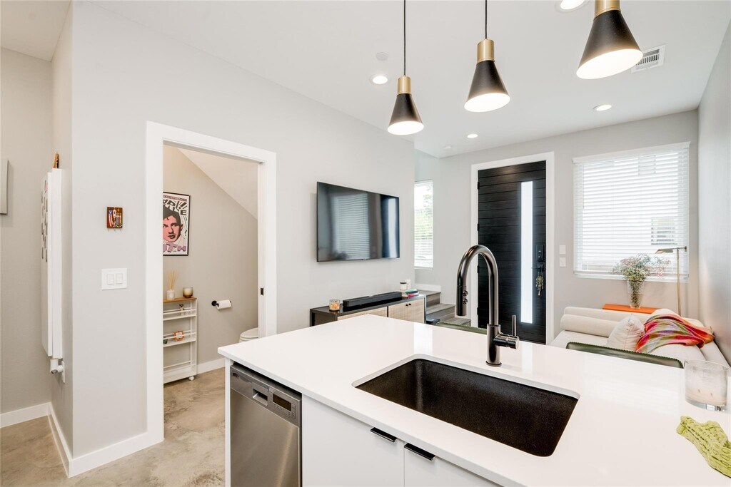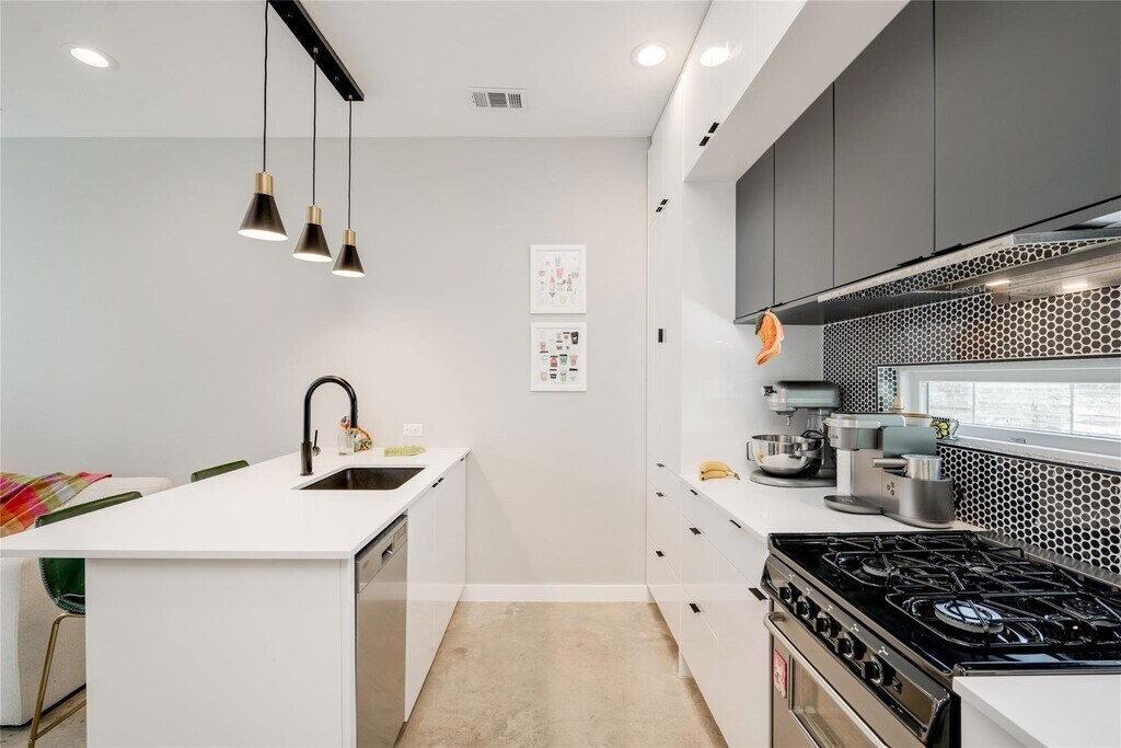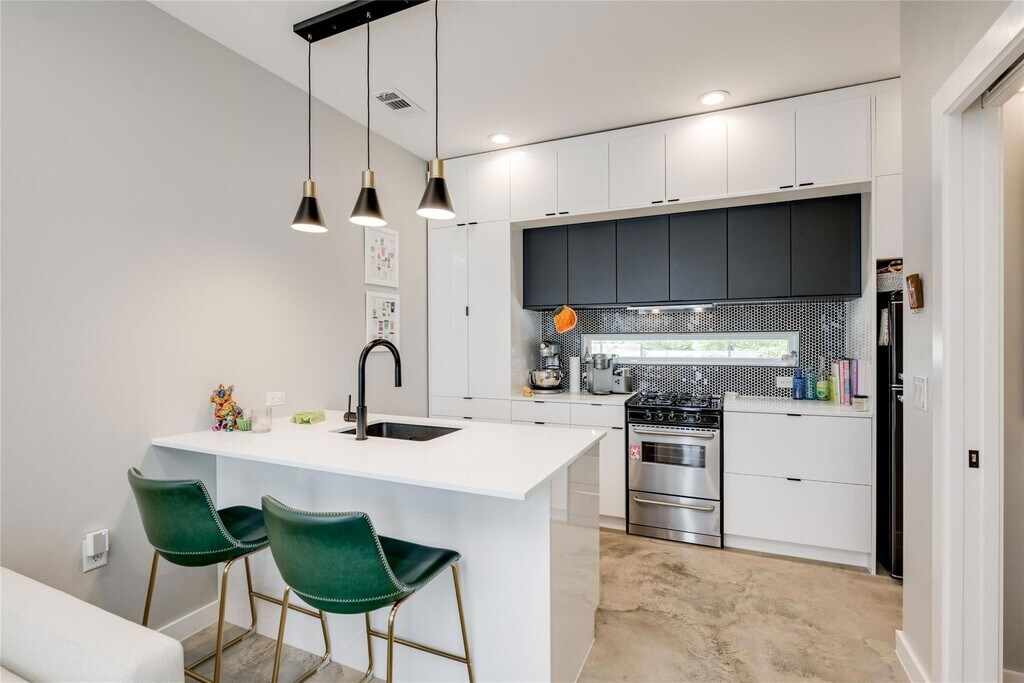Find yourself at home in this nearly new construction, 2021 luxurious East Austin loft. Thoughtfully designed with high quality materials, energy star water heater and windows. Downstairs enjoy luminous concrete floors, a modern kitchen with black and white penny tile backsplash, gas range, retro black Galanz refrigerator and microwave, floor-to-ceiling European cabinetry, undermount sink, black hardware and beautiful quartz countertops with a breakfast bar. The master ensuite located on the second level has an abundance of natural lighting with large windows, winter views of downtown, luxury vinyl plank and tall ceilings. Beautiful master bath includes designer tile with floor-to-ceiling finish in walk-in shower, walk-in closet with convenient direct access to stackable W/D. Reserved parking space with EV charging and other spots available for guests. Private xeriscaped front yard entry where you can add a small garden or seating area, and common area dog park directly behind unit. Urban living condo with amazing location - walking distance to Greenbelt or Mueller, including 6.5 acre park around the community lake. Enjoy the picnic areas, restaurants, coffee shops, farmer's market, and all the other great things that bustling Mueller has to offer. Easy access to UT, Downtown, bars and nightlife. Flexible move in! Option to have furnished. Pets allowed with a weight limit of 40 lbs or less. Pet deposit and fees apply. Schedule a tour today! 2108 Tillery St is a condo located in Travis County and the 78723 ZIP Code.