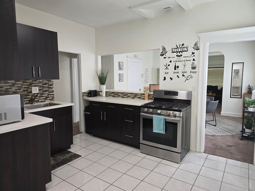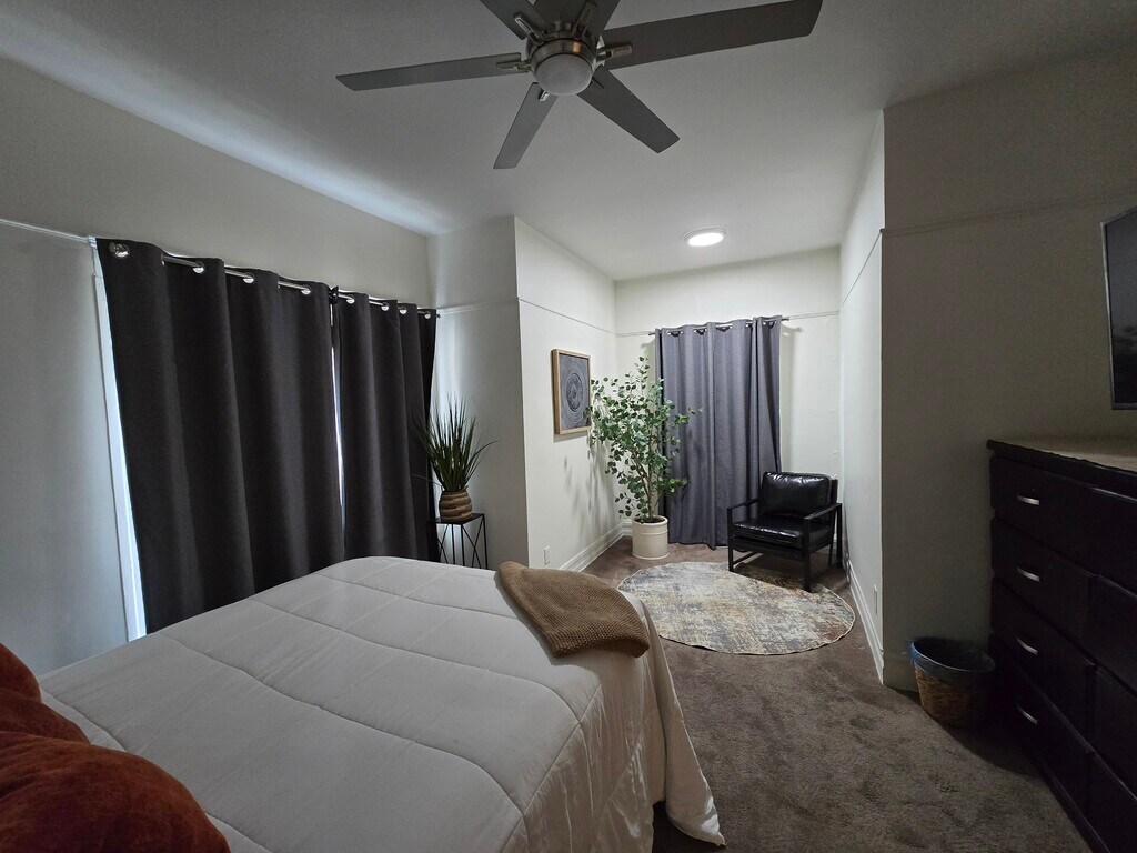 This is a four-unit apartment building in the City of Los Angeles. The available unit is a large one- bedroom apartment with a separate office located on the second floor. This unit is fully furnished and includes a queen size bed, new kitchen appliances, televisions in living room and bedroom. In addition, there is an in-unit washer/dryer, Wi-Fi and a single dedicated parking space in the backyard.