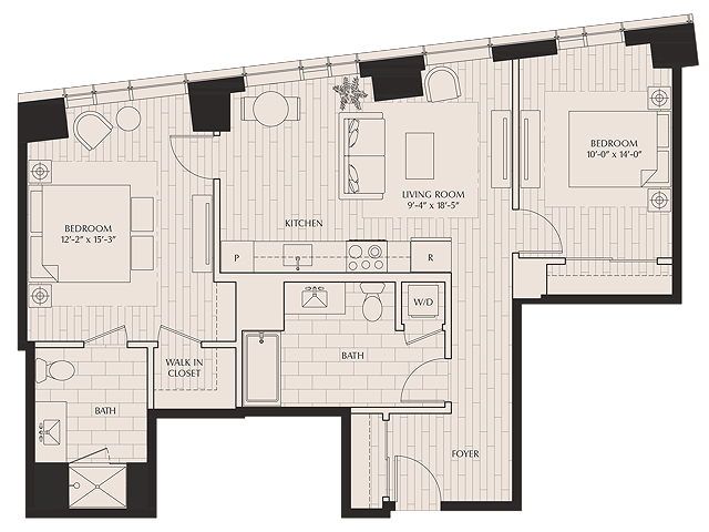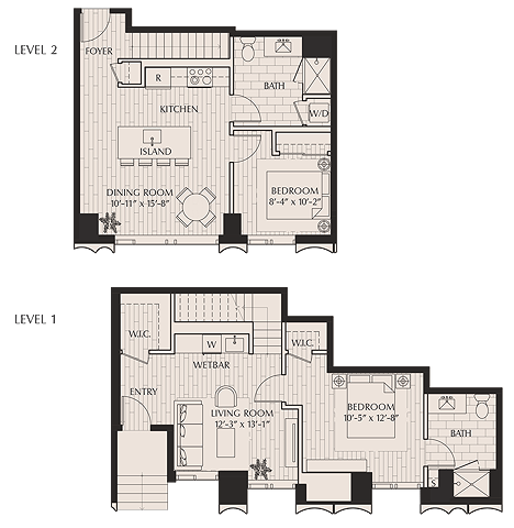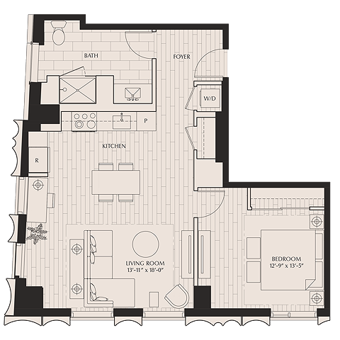 1 Dormitorio, 1 Baño, 680 pies²Precio Mensual TotalDisponible Dec 12Galería del Modelo