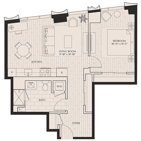 S1.1 - Plano 1 Unidad de apartamento: 302Modelo de apartamento: S1.1Desde $4,315Estudio, 1 Baño, 491 sq ftDisponible AhoraPlano: S1