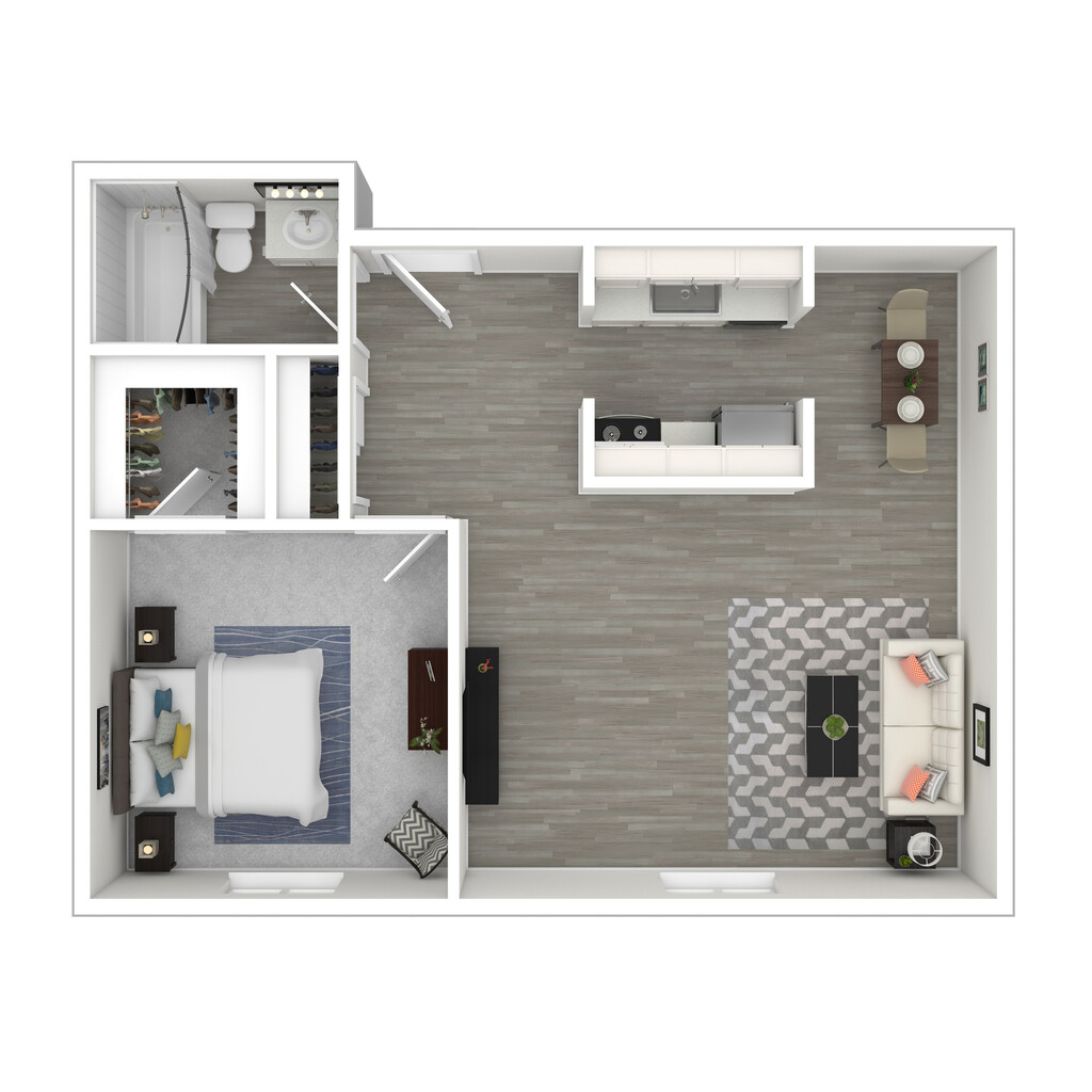 1 Dormitorio, 1 Baño, 590 pies²Disponible AhoraGalería del Modelo