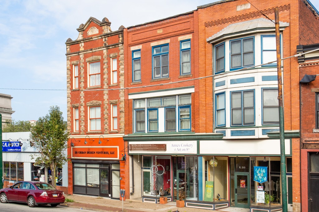 213-215 E 8th Ave tiene 5 centros comerciales en un radio de 0.8 millas.