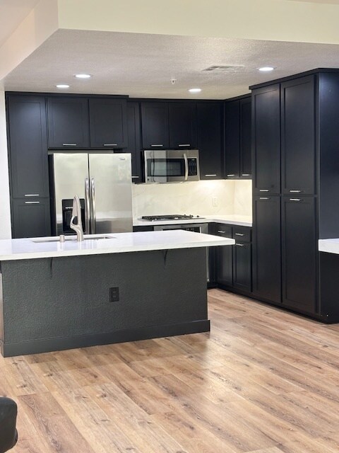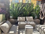 Woodland hills, all amenities, newly renovated modern condo. Open-concept kitchen with a huge center island that can seat five. Huge cabinets for lots of storage. Enjoy an extended living room with large windows that view a fresh green landscape. Step out into your own private gated patio for morning coffee or an afternoon reprieve. The spacious Master bedroom includes a large walk-in closet and an ensuite spa-like bathroom. Enjoy your large, beautiful rain shower, with a handheld for rinsing and a bench for relaxation. Tons of storage in your double sink vanity. The second bedroom includes a large closet and large windows with its own private full bathroom. This building is near Warner Center, Topanga Canyon Mall, Trader Joe's, Target, Ralphs market, and lovely neighborhood Restaurants and Cafes. The unit also comes with two side-by-side parking spaces conveniently located at the elevator. Amenities include a fully secured building, a mail room, and parking. The condo is on the first floor, which conveniently accesses a swimming pool, jacuzzi, barbecue, recreation room, and conference room. In addition, there is an outdoor fireplace and a wall fountain, all with tasteful hotel-style seating. The recreation room includes a TV and a full modern kitchen with a Bar and table for eating. In addition, there are billiards and game tables. Twelve paces away, you will find a fully equipped gymthat includes resistance Apparatus, various weights, and treadmills. Lots of extended living spaces for entertaining and relaxing.