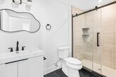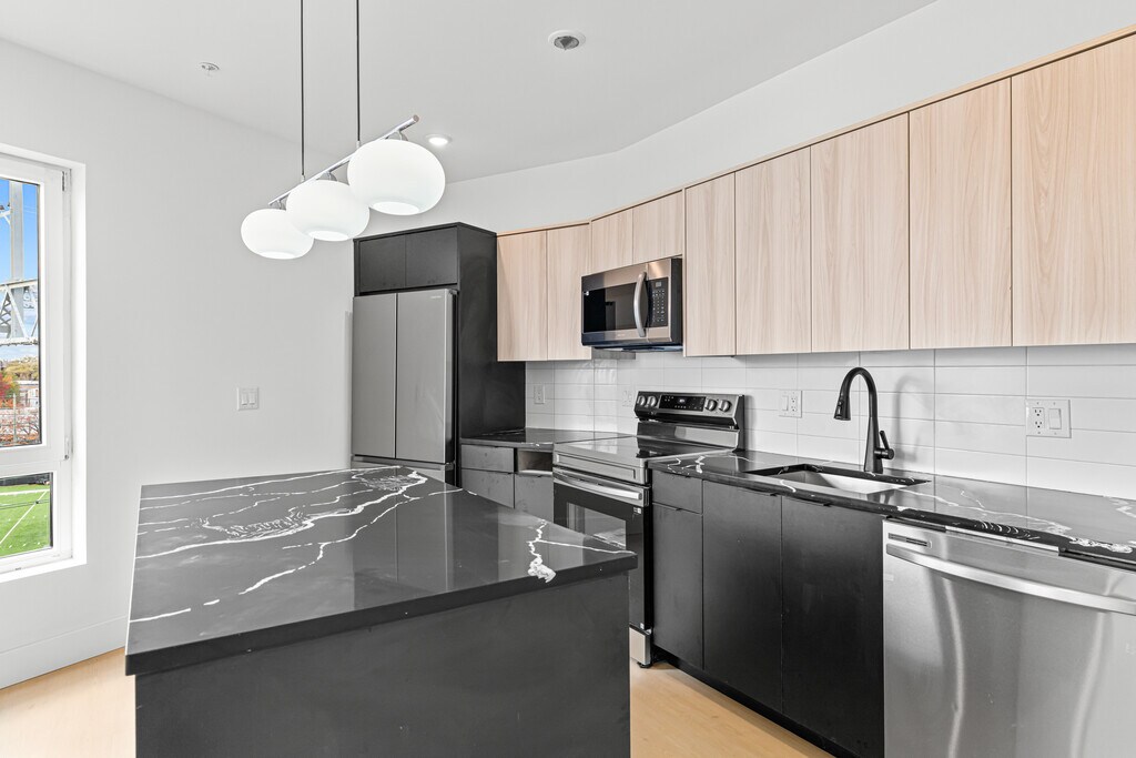 This brand-new 2-bedroom, 2-bath apartment features a cozy walk-out porch and modern finishes throughout. Includes stainless steel appliances, in-unit washer/dryer, Nest thermostat, and a kitchen counter overhang that fits stools for seating. Building includes gym access, lobby, garbage chute, and secure electronic key fob entry. Parking available for an added fee.