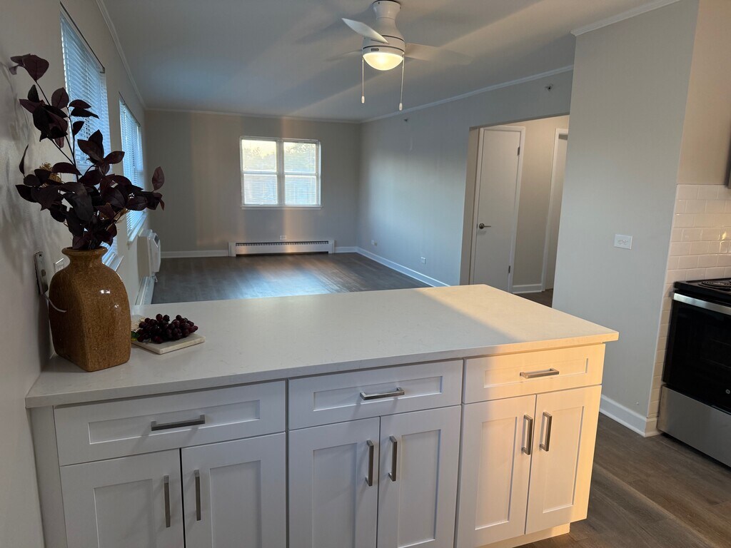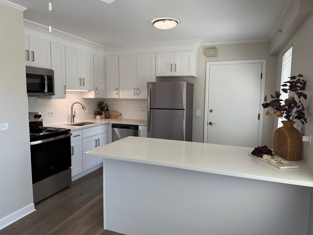 Excelentes apartamentos de una habitación, un baño, apartamento unos pasos de distancia de todo lo que el centro de Arlington Heights tiene para ofrecer. A dos cuadras de la estación de Metra. Calefacción y agua incluidos en el alquiler. Nuevos gabinetes y electrodomésticos de acero inoxidable, pisos laminados en todos los ambientes. Lavandería y almacenaje en el lugar, estacionamiento en la superficie incluido en el alquiler base. Illinois Real Estate el Licenciatario de minorías, llama al 847-971-1098